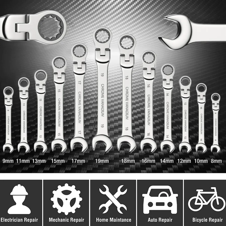 72 tooth ratcheting box end needs a minimal 5° to move fasteners vs. 30° for standard wrenches
