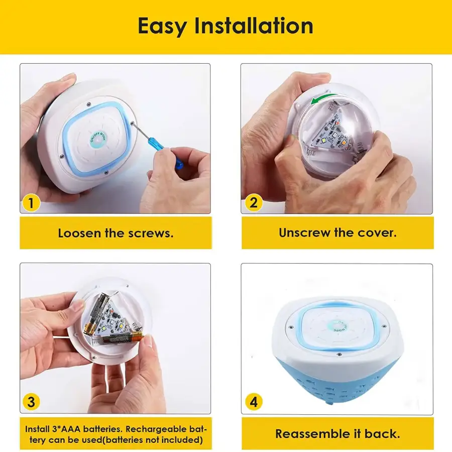 · 【Easy ON/OFF】- Unlike the previous buttons, current button is located in the middle of the top, that is durable and stable. The shape of floating light conforms to ergonomics of the hand, you can operate it with one hand. Simple and Safe for adults and kids. Battery Operated Powered, need 3*AAA Batteries per light.