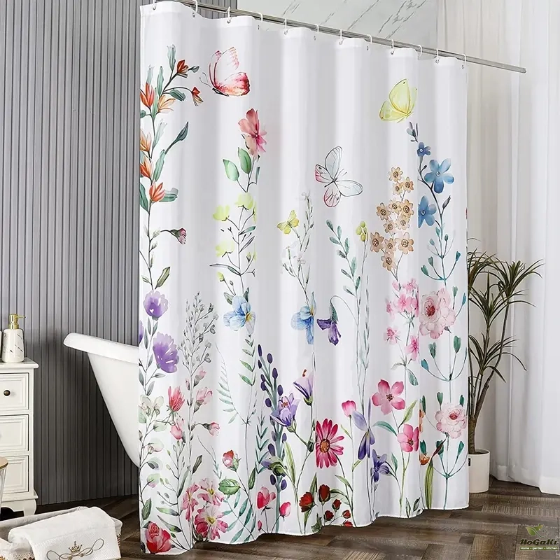 Floral Summer Shower Curtain Flower Fabric Cloth Shower Curtains for Rustic Vintage Bathroom Decor Spring Plant Shower Curtains