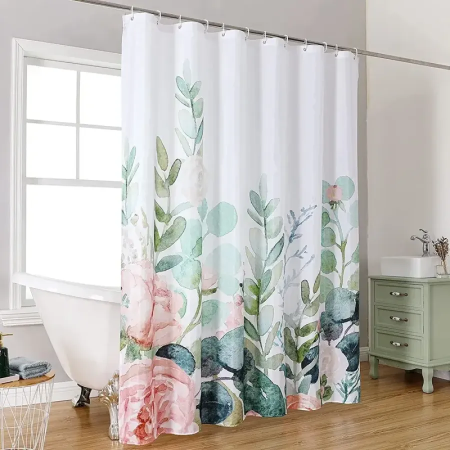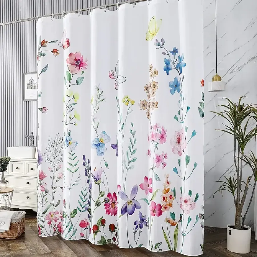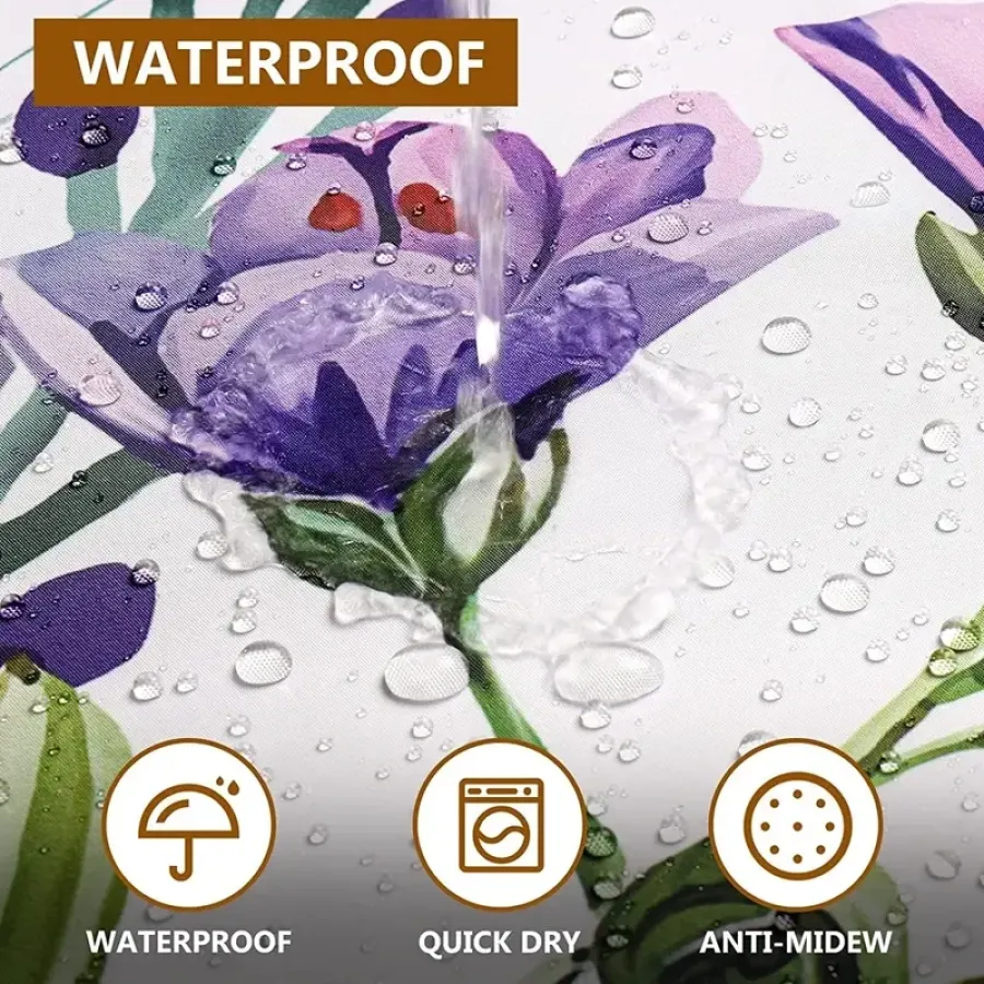 Featuring vivid colors, this polyester fabric shower curtain is built to last. The waterproof material let water beads stay on the surface and dries quickly.