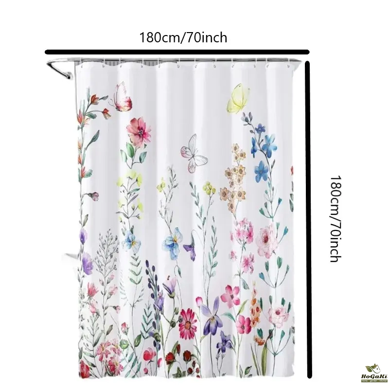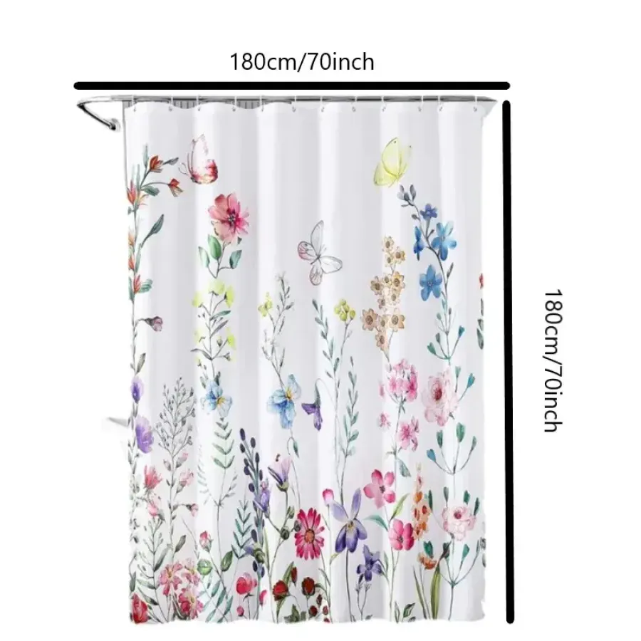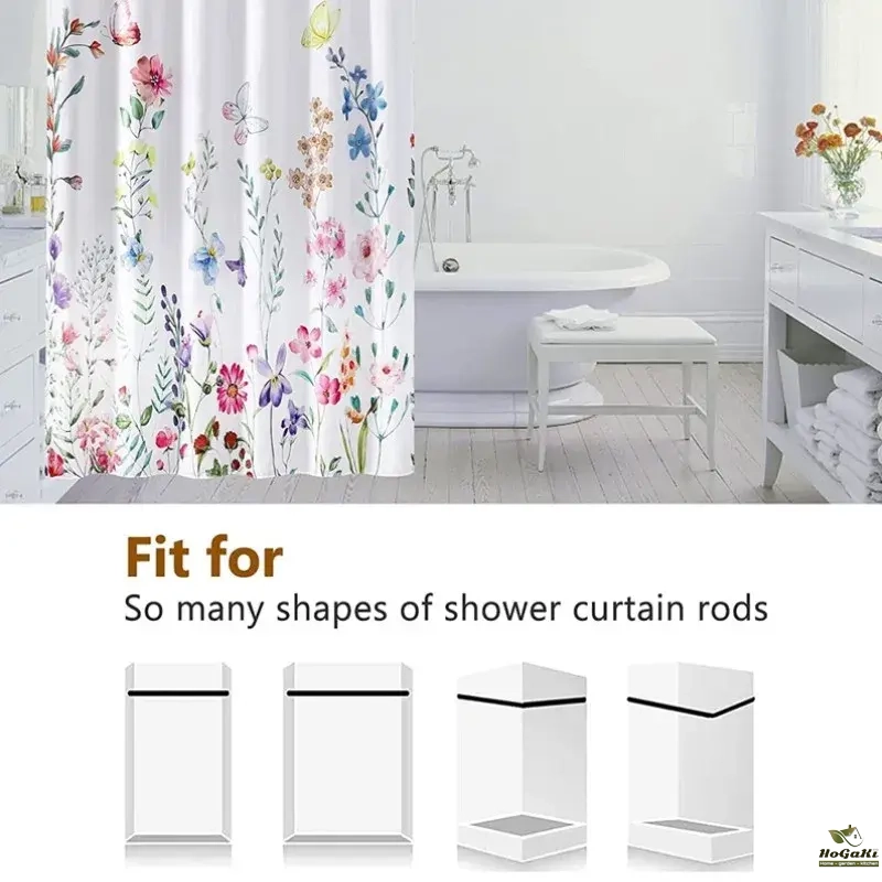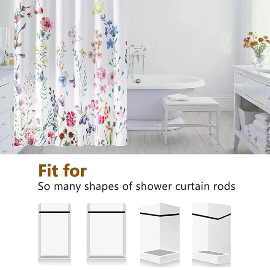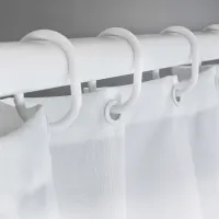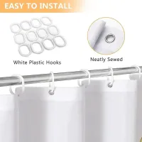 With metal grommets on the top, our shower curtain can be hung on the pole quickly using shower rings. Plus, the 12 included C-shaped hooks make installation a breeze.