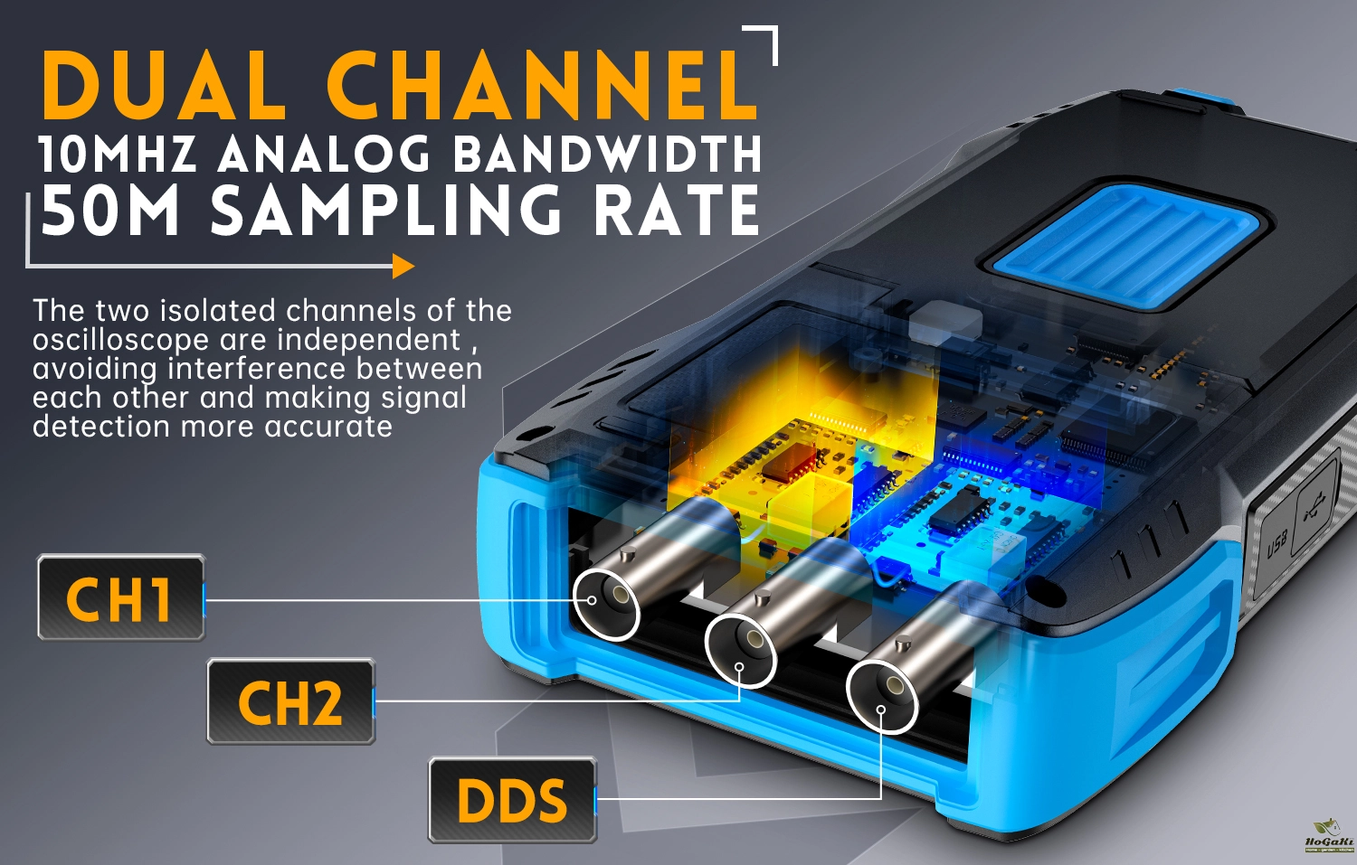 2C23T features a 50MS/s sampling rate and 10MHz bandwidth.