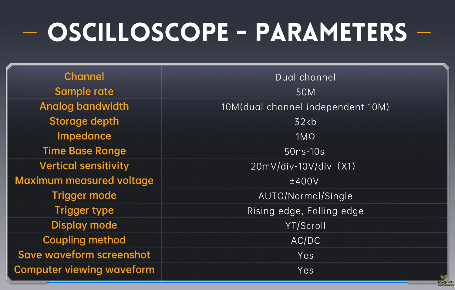 Analog Bandwidth: 50MHz (independent dual-channel)