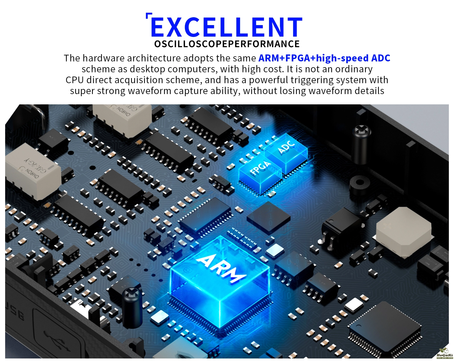 2C53T upgrades to a 250MS/s sampling rate and 50MHz bandwidth, providing higher precision and faster signal capture.