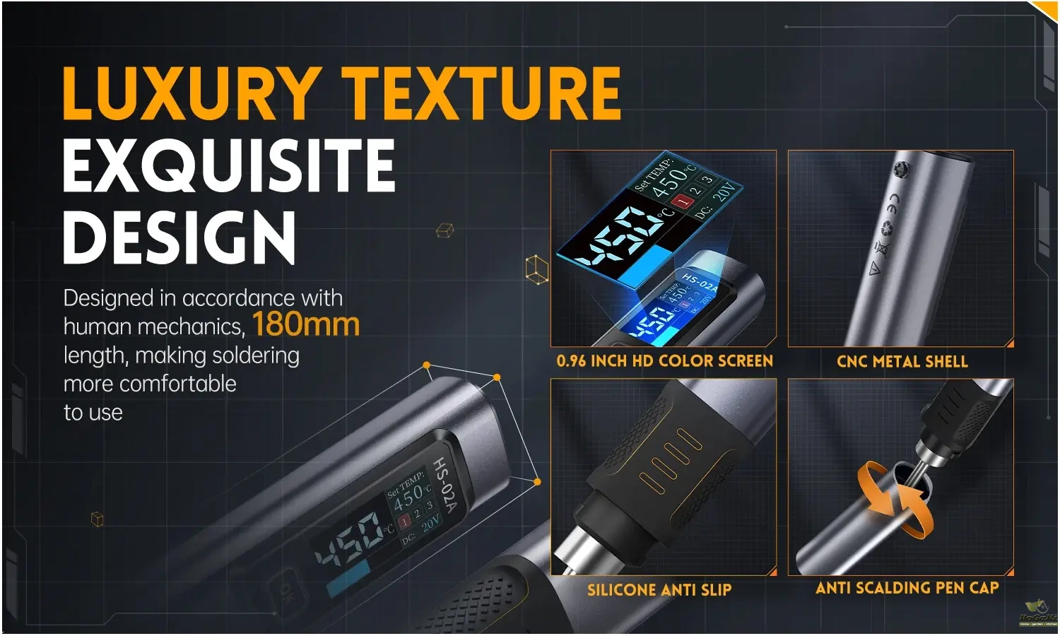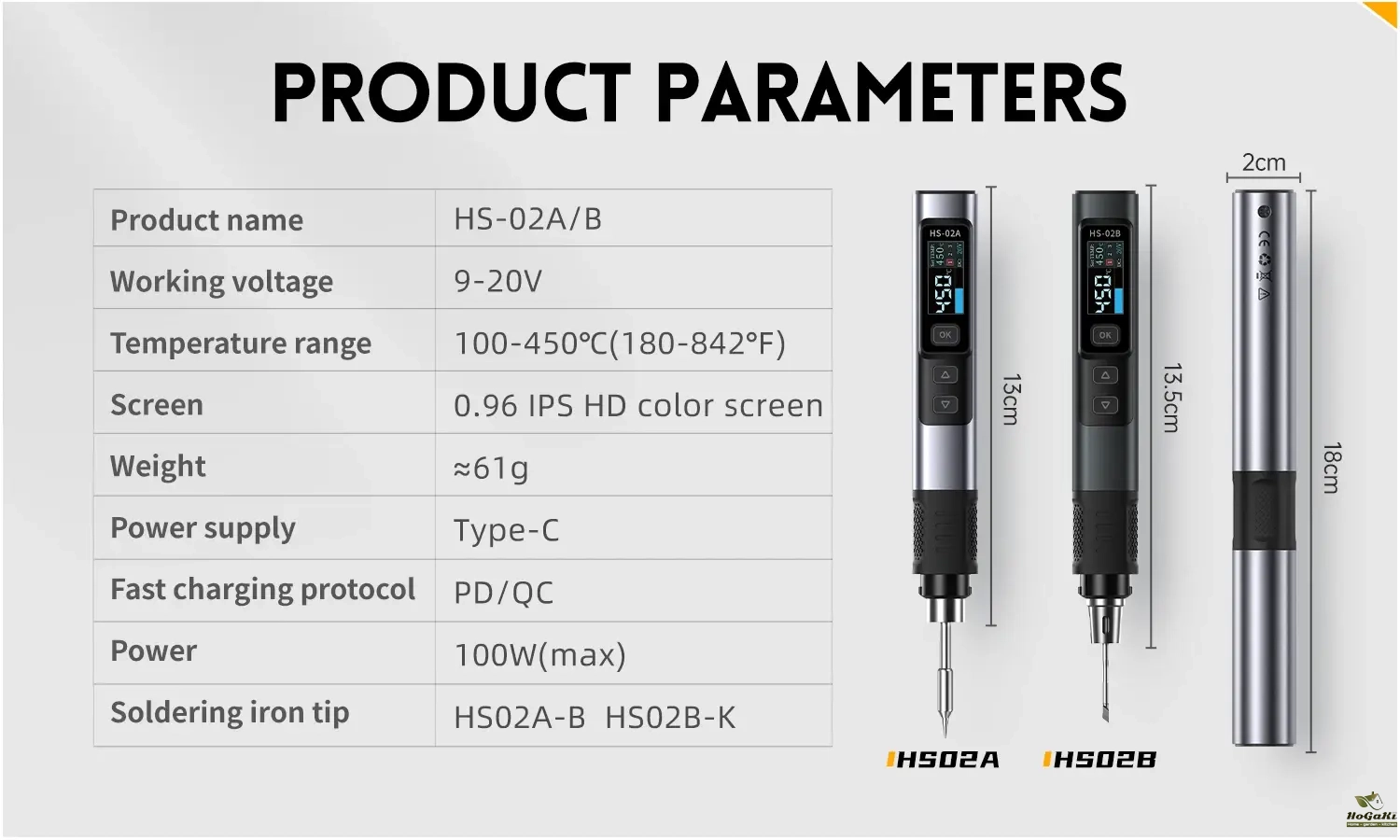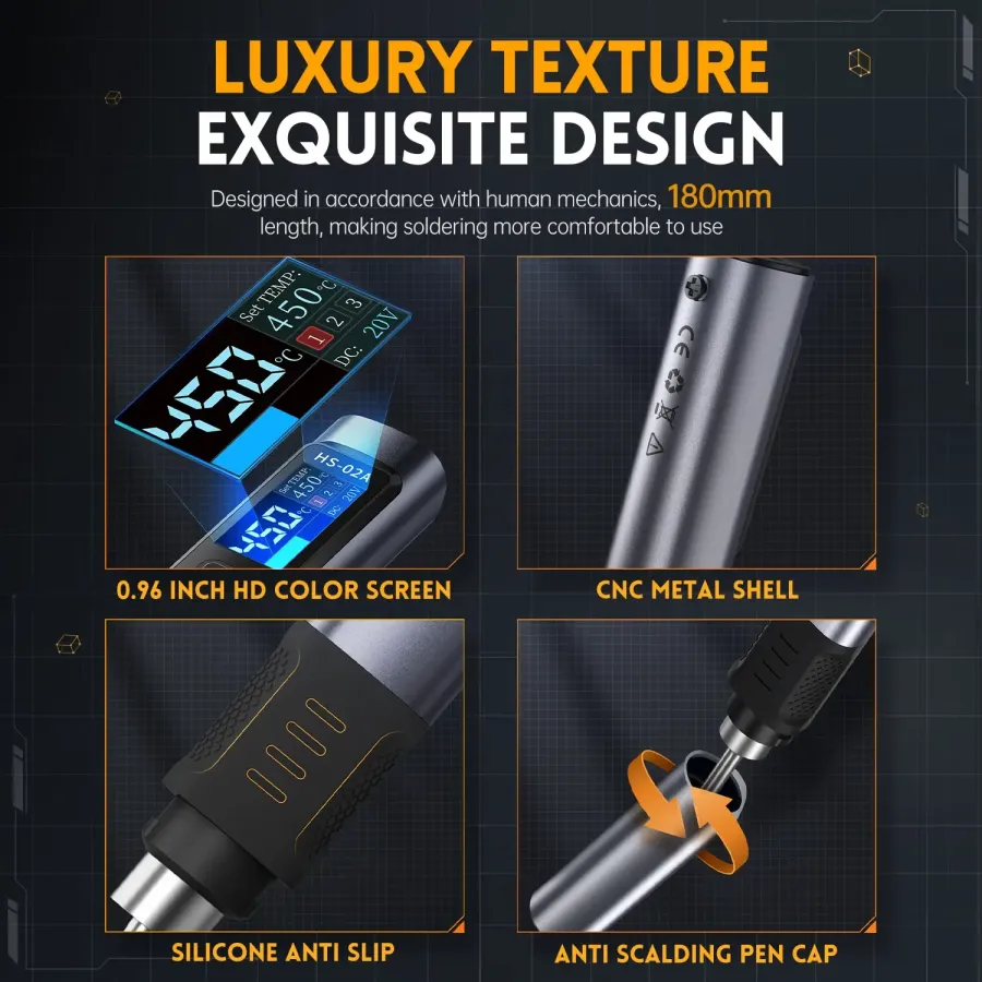 HS-02 is a portable screen display intelligent soldering iron launched by our company. This soldering iron has the following characteristics: