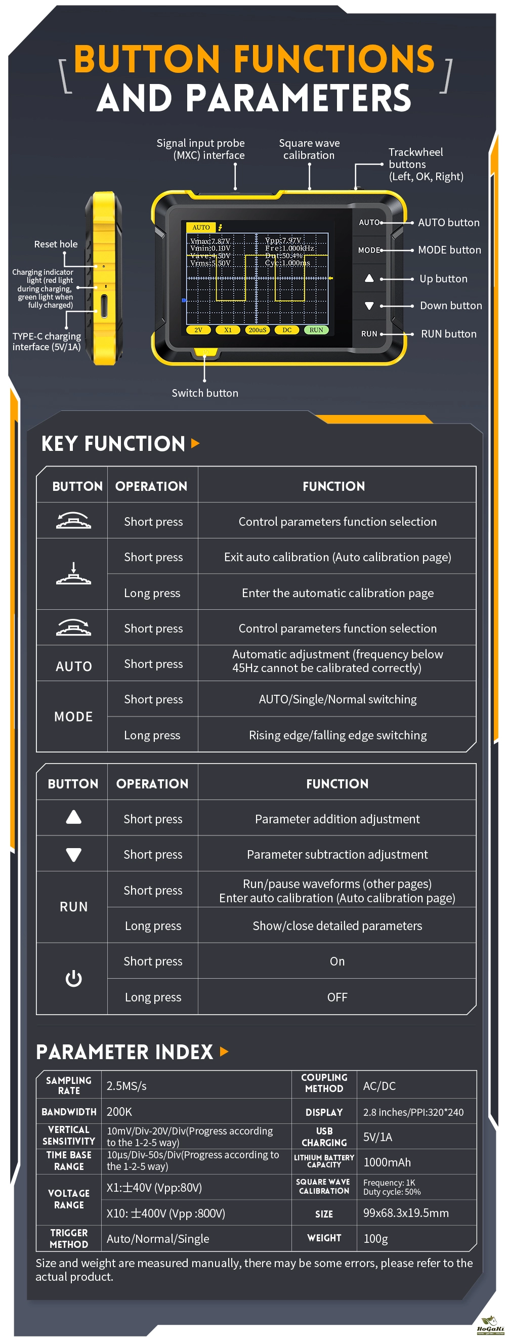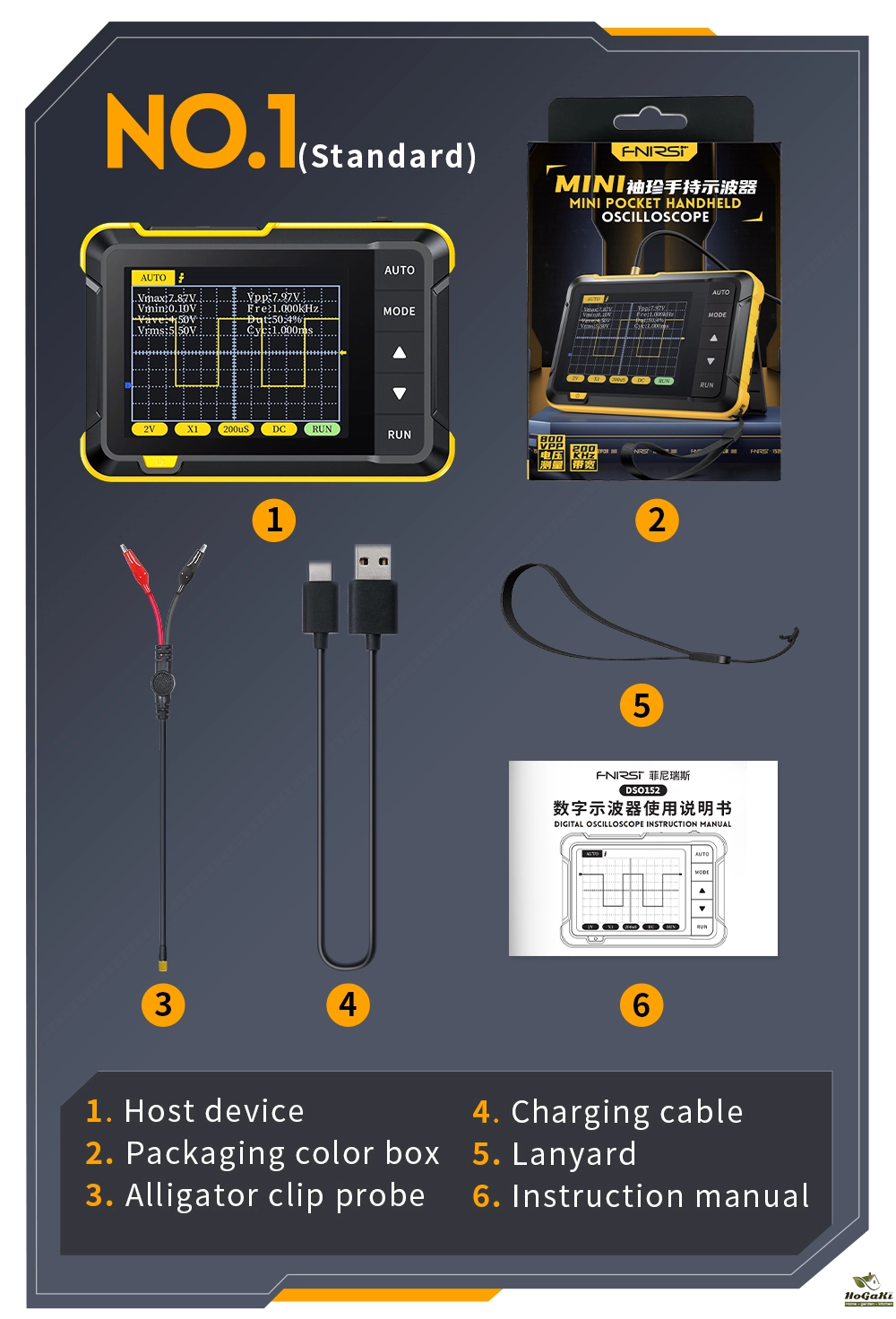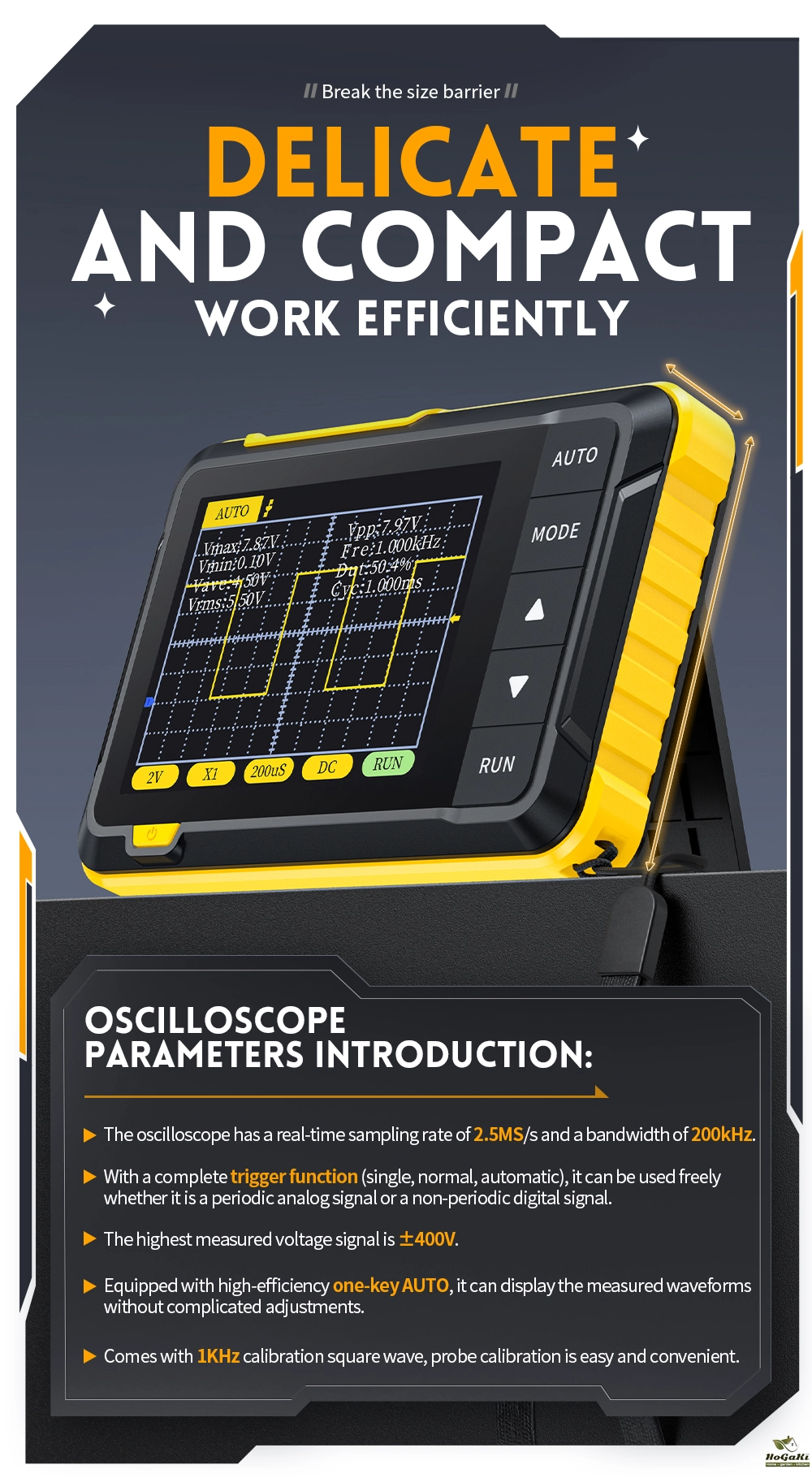 The DSO152 is a compact, entry-level oscilloscope, designed for basic signal analysis and maintenance tasks. It provides essential oscilloscope functions in a lightweight and easy-to-carry design.