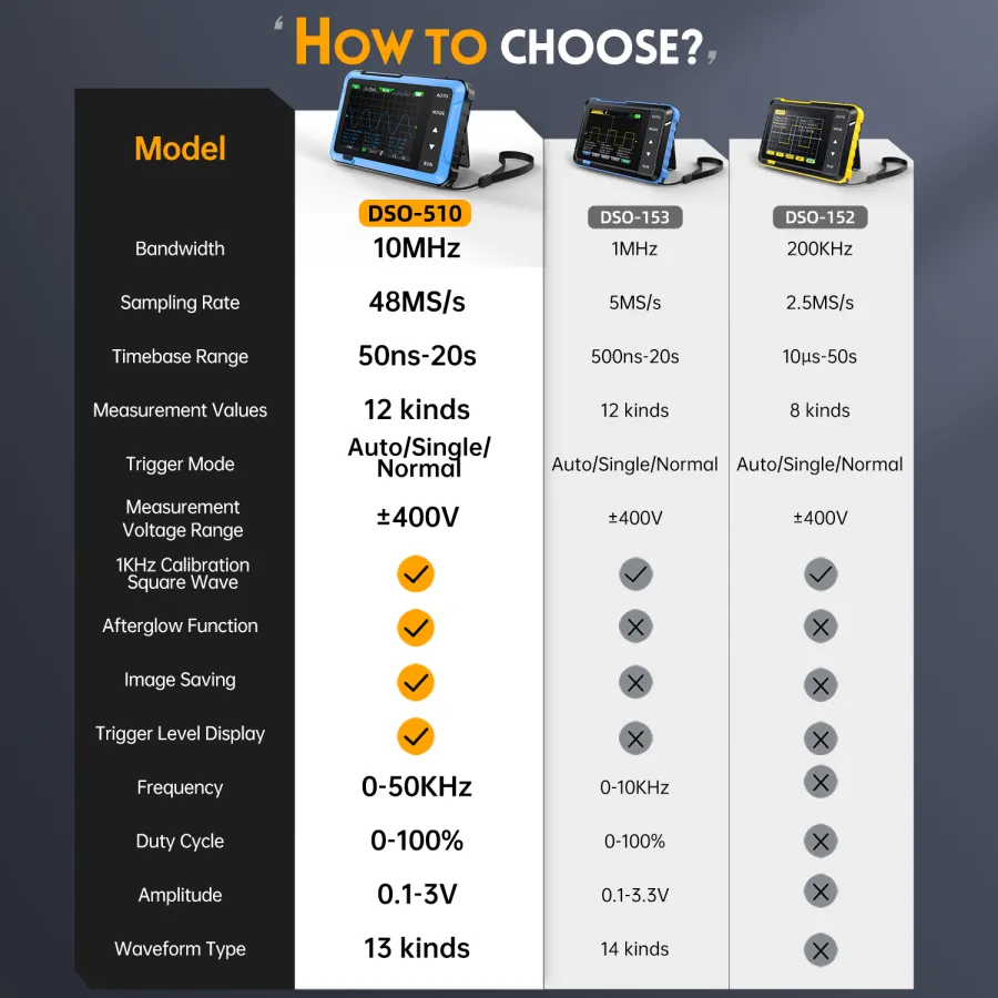 These three models—DSO510, DSO153, and DSO152—are designed to address different levels of testing requirements.