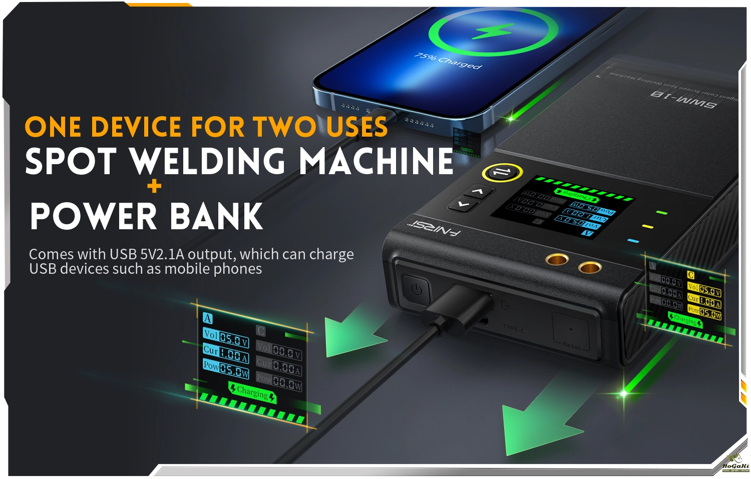 Double pulse spot welding technology is adopted to make the welding more stable and firm, and it also has the function of power bank.