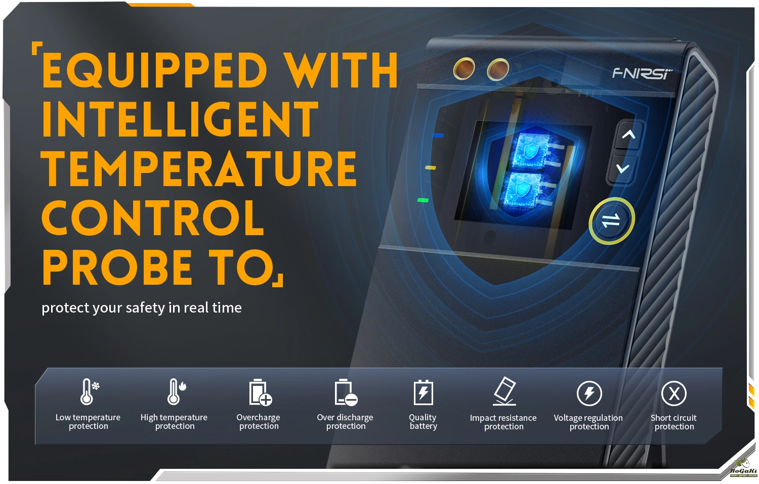 Built-in intelligent temperature control probe, over-temperature, low voltage, and short circuit protection.
