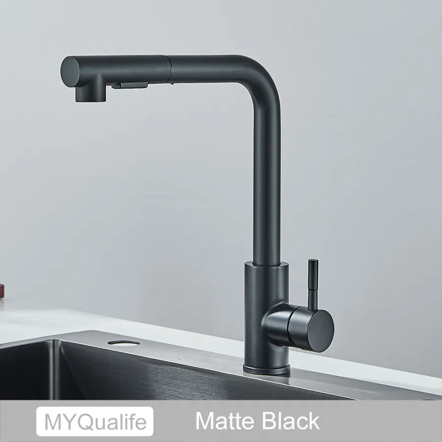 Black Pull Out Kitchen Sink Faucet Deck Mounted Stream Sprayer Kitchen Mixer Tap Single Handle Bathroom Kitchen Hot Cold Tap\