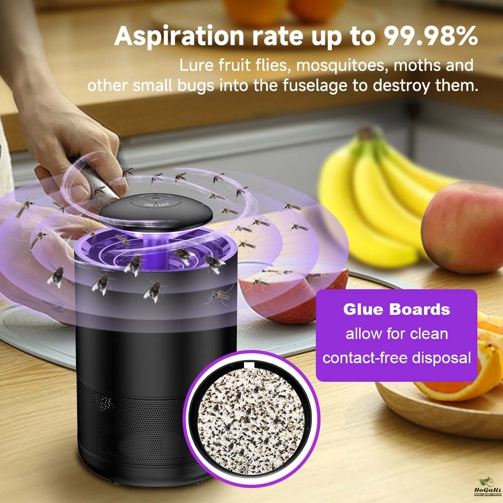 Place the fly trap near the near fruit, trash cans or plants, and turn off the lights for optimal effectiveness. The fruit fly traps for indoors catch fruit flies, mosquitoes, small insects, moths and small bugs, paired with sticky boards, insects have nowhere to escape.