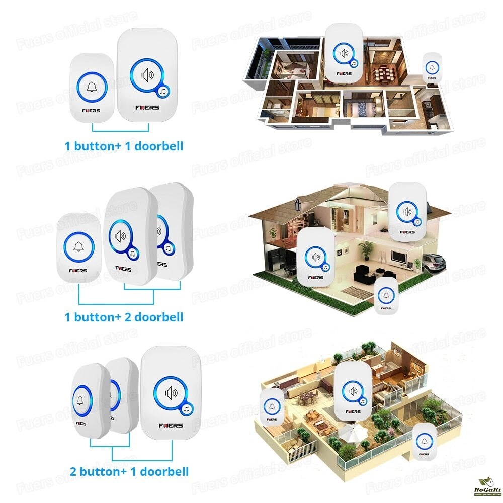 Fuers Wireless Doorbell Home Welcome Chime Alarm 32 Tunes Switch Waterproof Button Villa Store Hotel Entry Led-Light Smart Doorbell