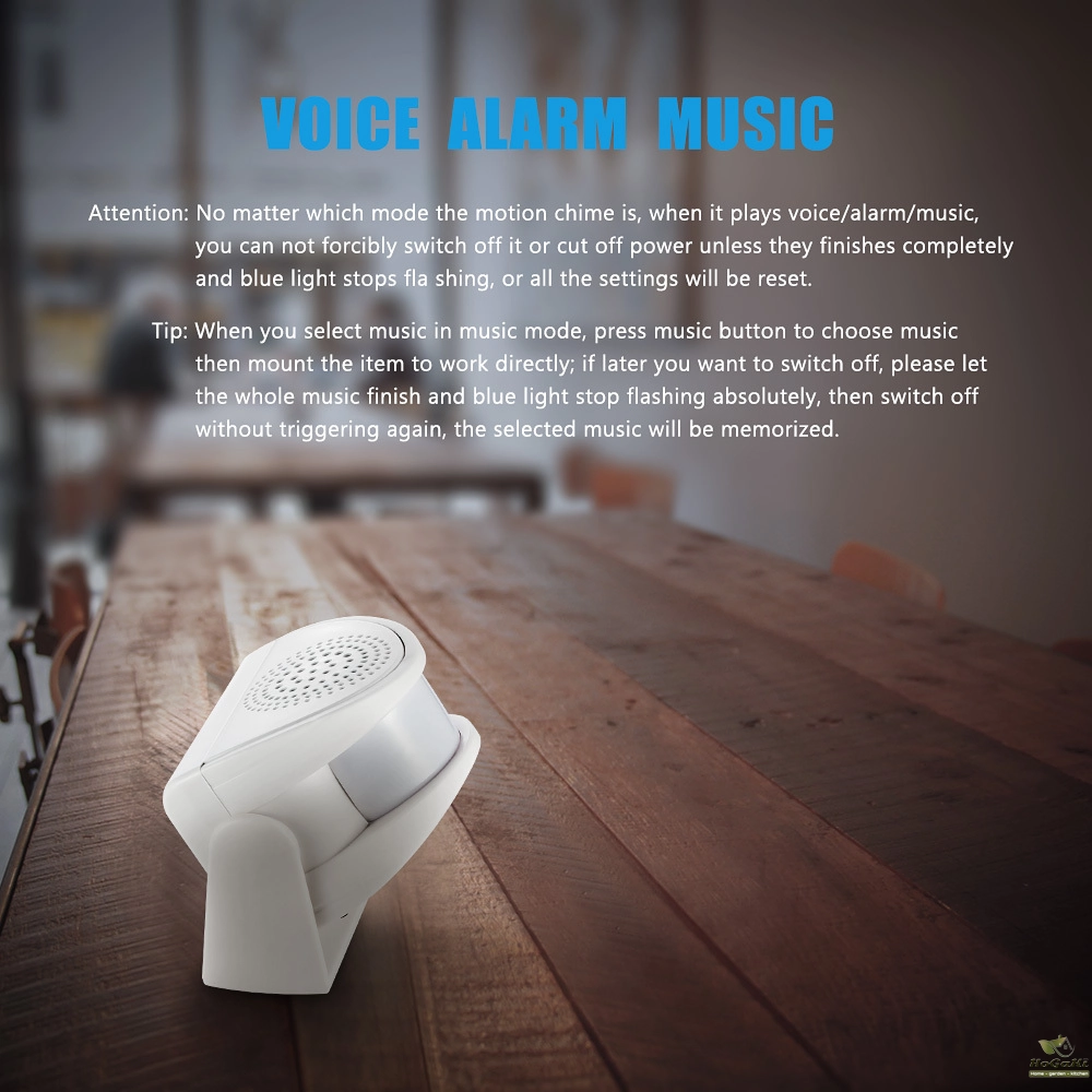 No matter which mode the motion chime is ,when it plays voice/ alarm/ music, you can not forcibly switch off it or cut off power unless they finishes completely and blue light stops flashing, or all the settings will be reset.