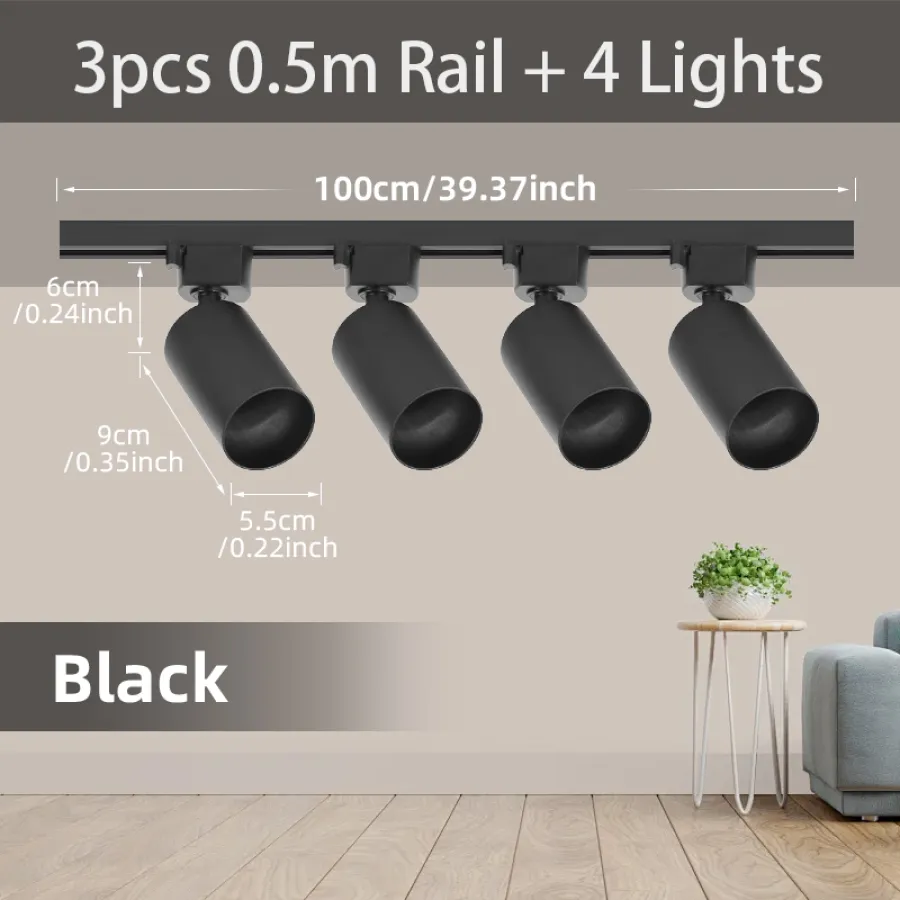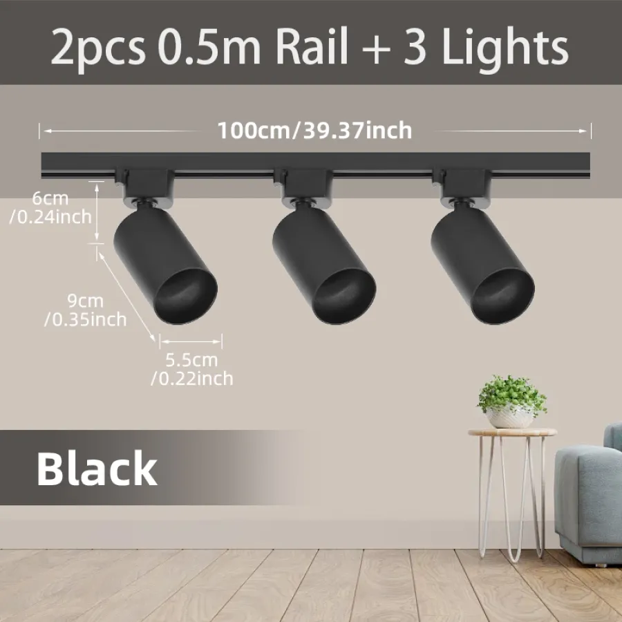 ●3pcs White/Black sets: 3 lights+2 0.5m rails+1 connector