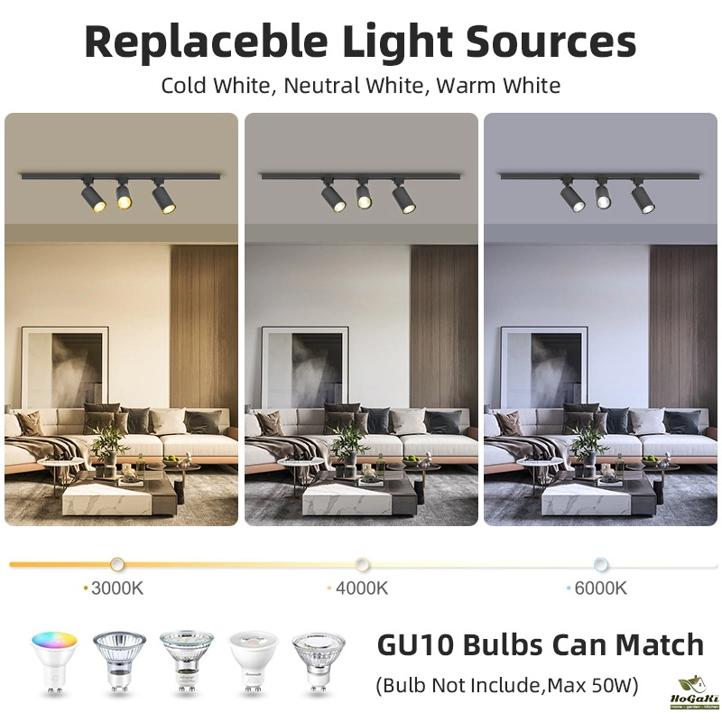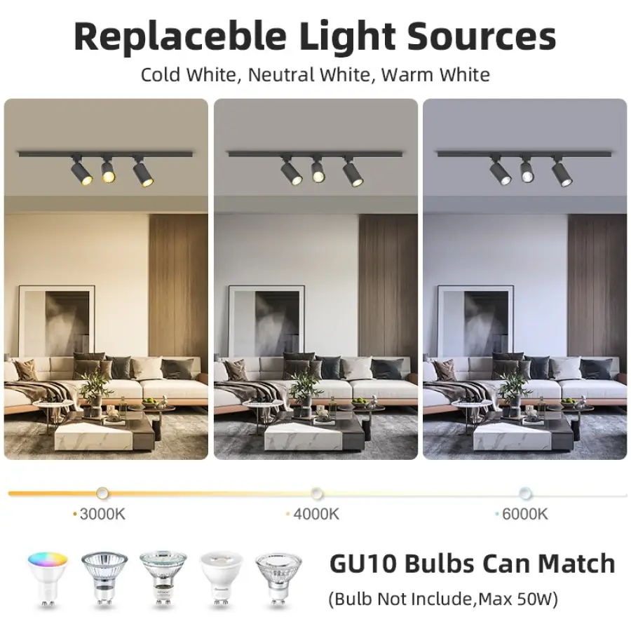 1. Replaceable GU10 light bulb.(This way you can DIY select the light bulb you need. For example, during holidays, it is possible to replace the RGB GU10 light bulb with a more atmospheric one.)