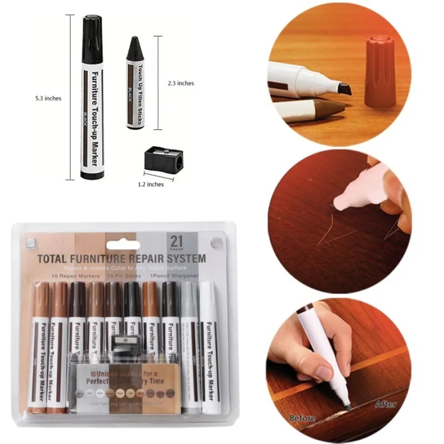 Furniture Repair Kit Wood Markers - Set of 21pcs/17pcs/13pcs - Markers and Wax Sticks with Sharpener Kit, for Stains, Scratches, Wood Floors, Tables, Desks, Carpenters, Bedposts, Touch Ups, and Cover Ups