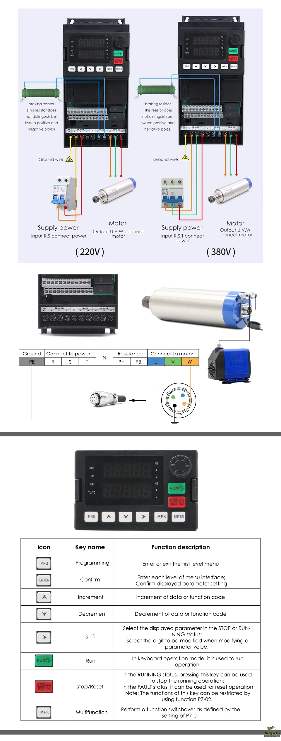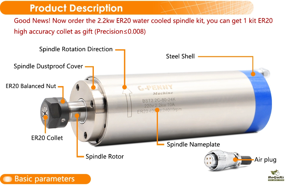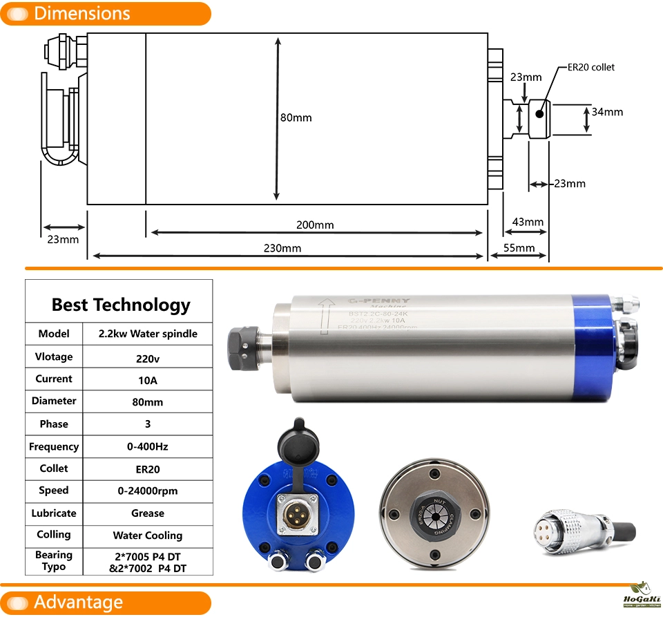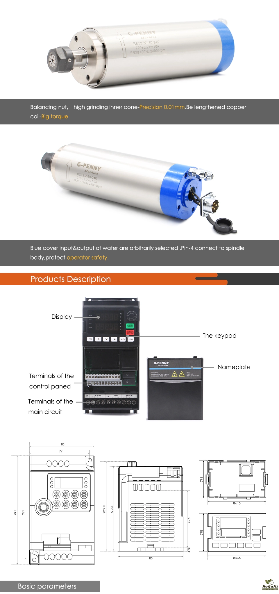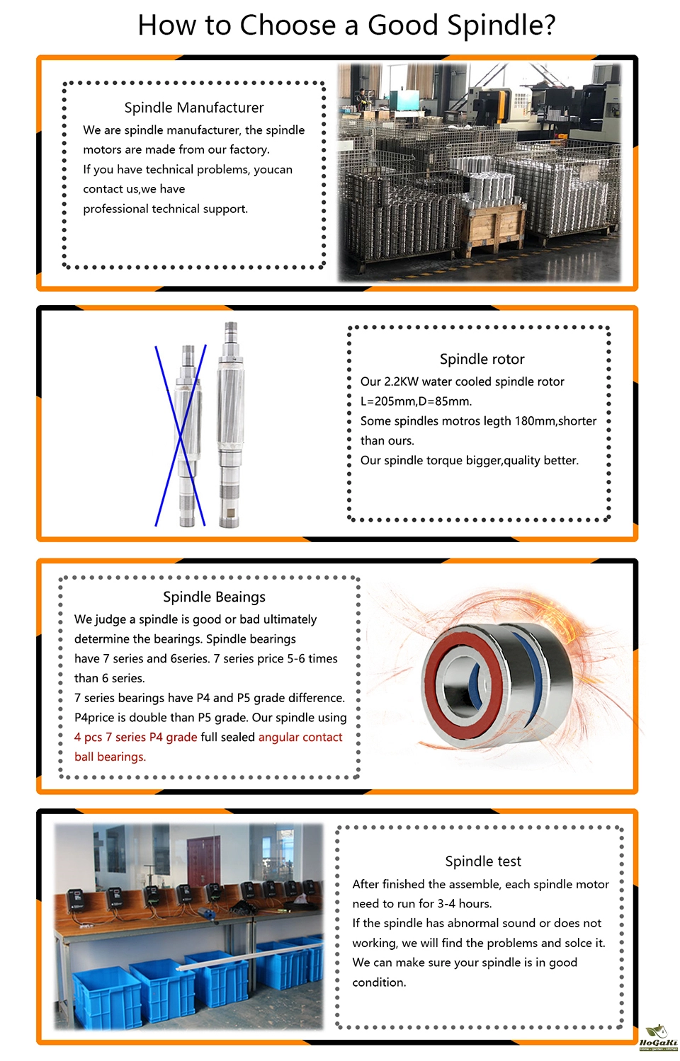 1 & 220v 2.2kw CNC Water Cooled Spindle Motor 80x230mm ER20 4 bearings