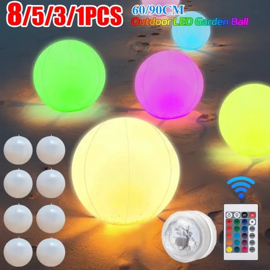 Note: Garden Luminous LED Ball 16 Colors Luminous Bouncy Ball Swimming Pool Luminous Inflatable Balloon Beach Wedding Party Decoration