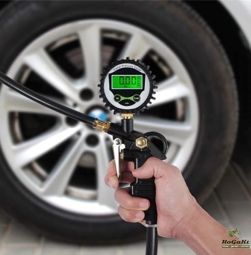 1 x Pistol Style Digital Tire Pressure Gauge 1/4 "NPT steel fitting (EU standard)