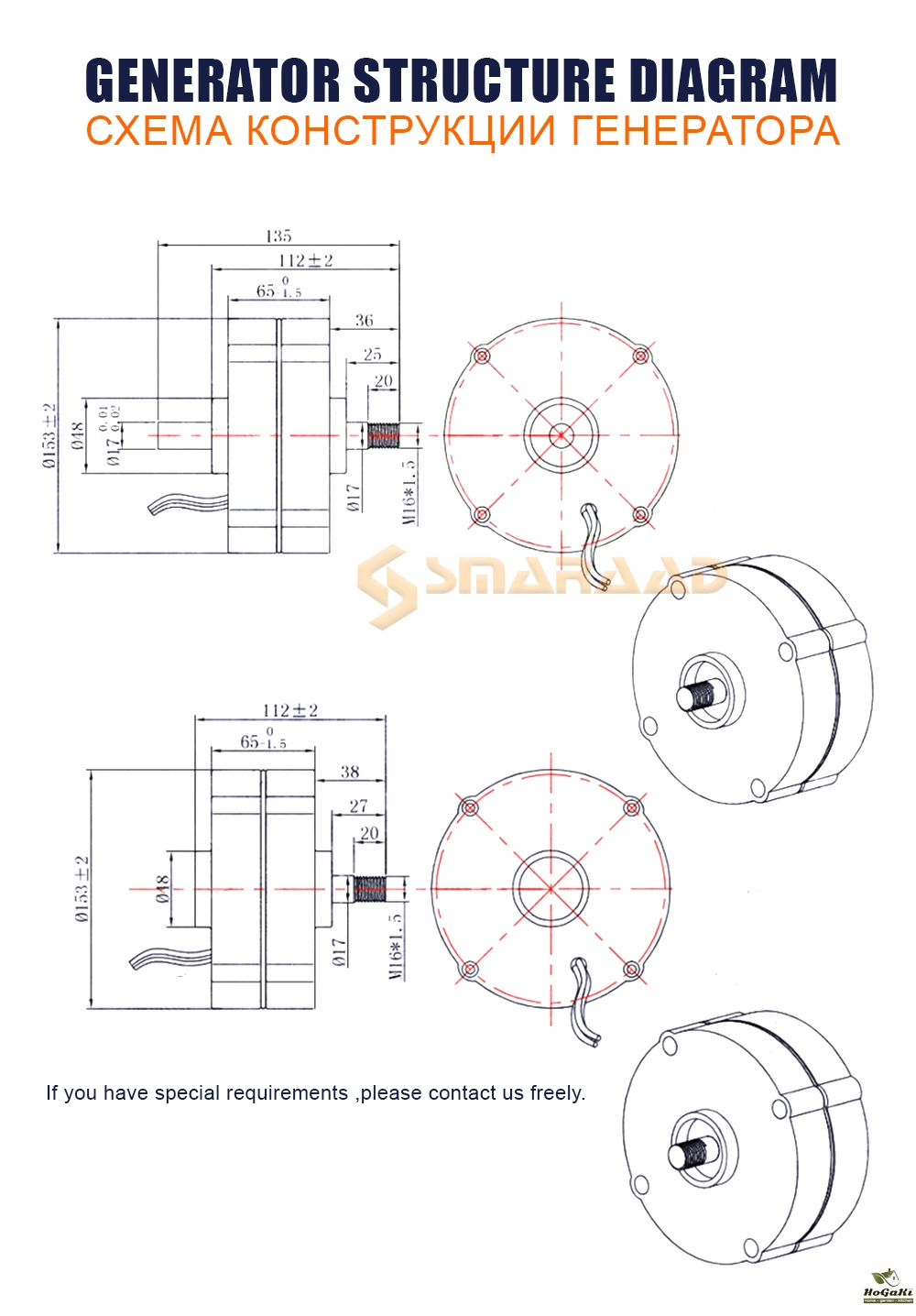Low Speed 500W 12V 24V 3 Phase Gearless Permanent Magnet Generator AC Alternators Use For Wind Turbine Water Turbine DIY
