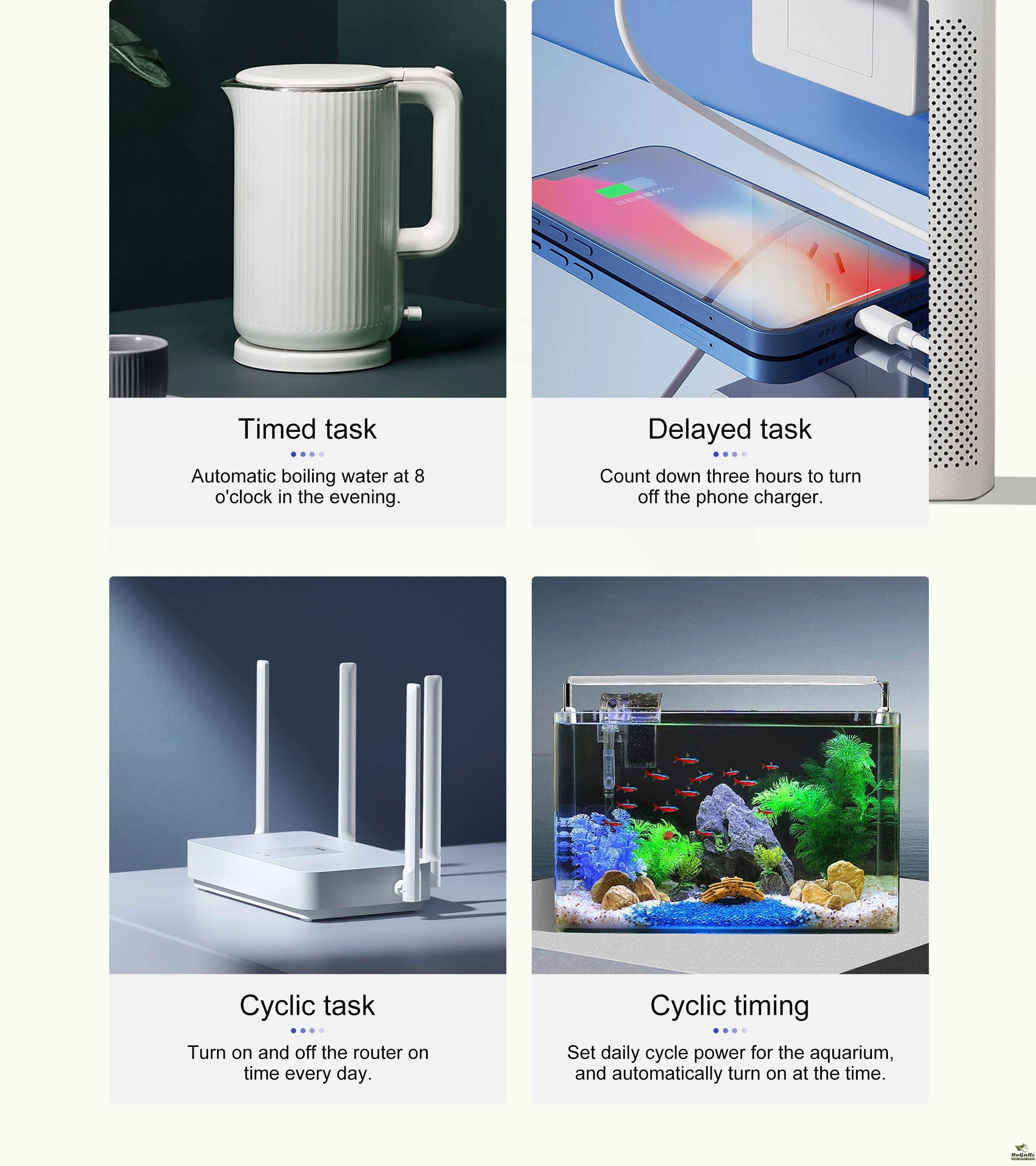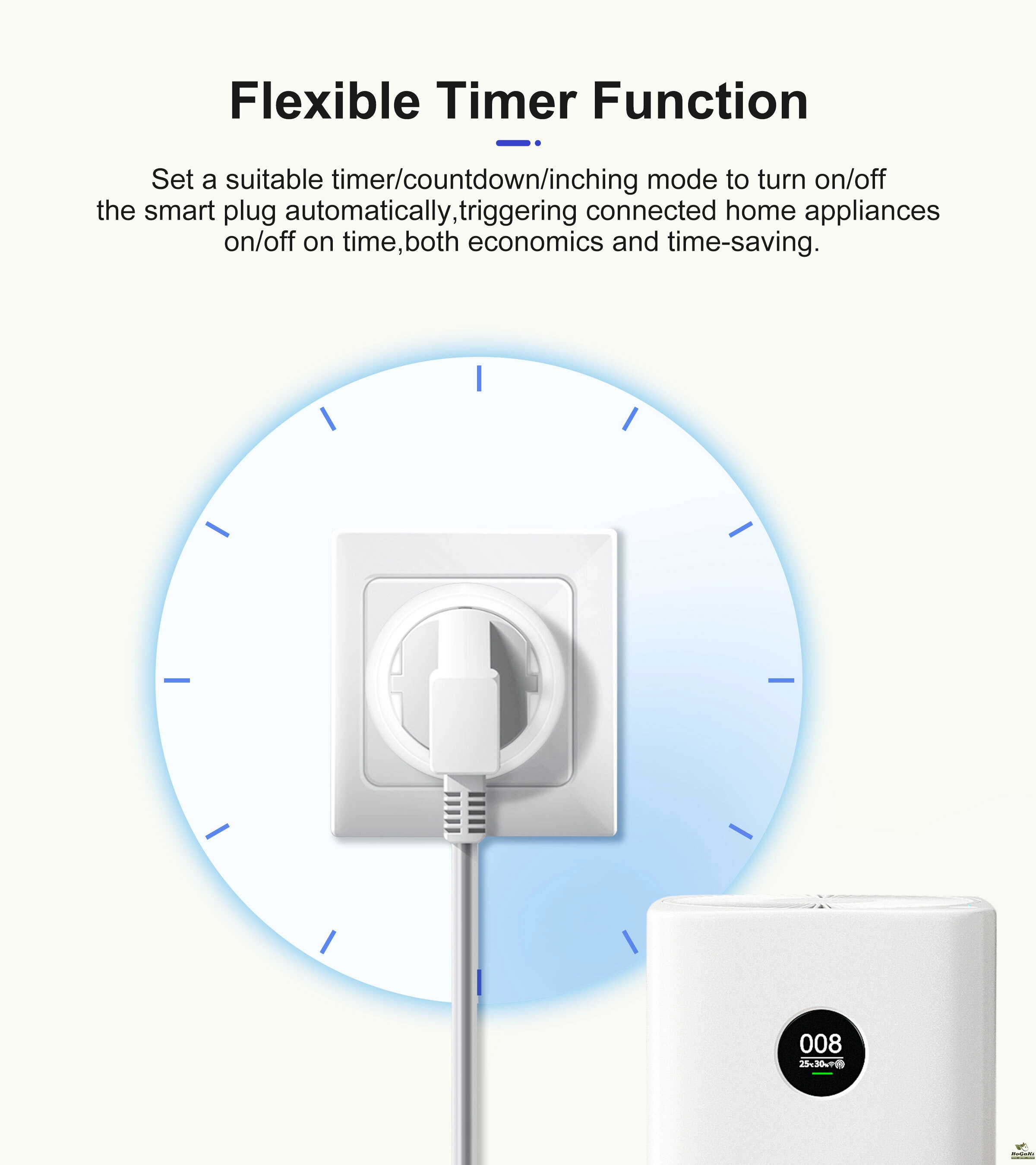 Multiple timer modes can be set to meet your requirements. Set a suitable timing schedule to trigger the devices which connected to smart plugs on time, both energy-saving and time-saving.