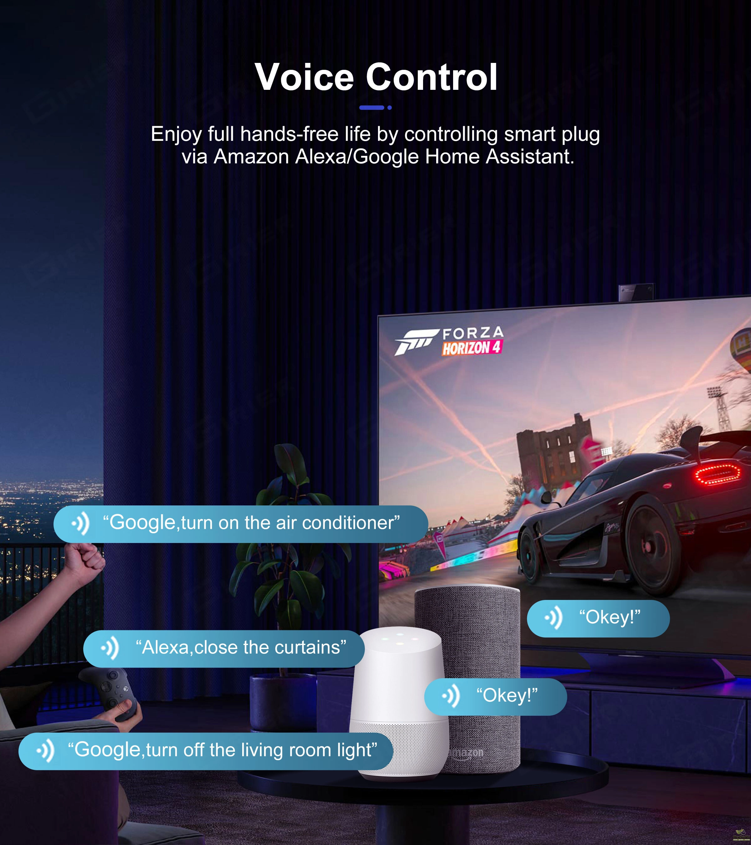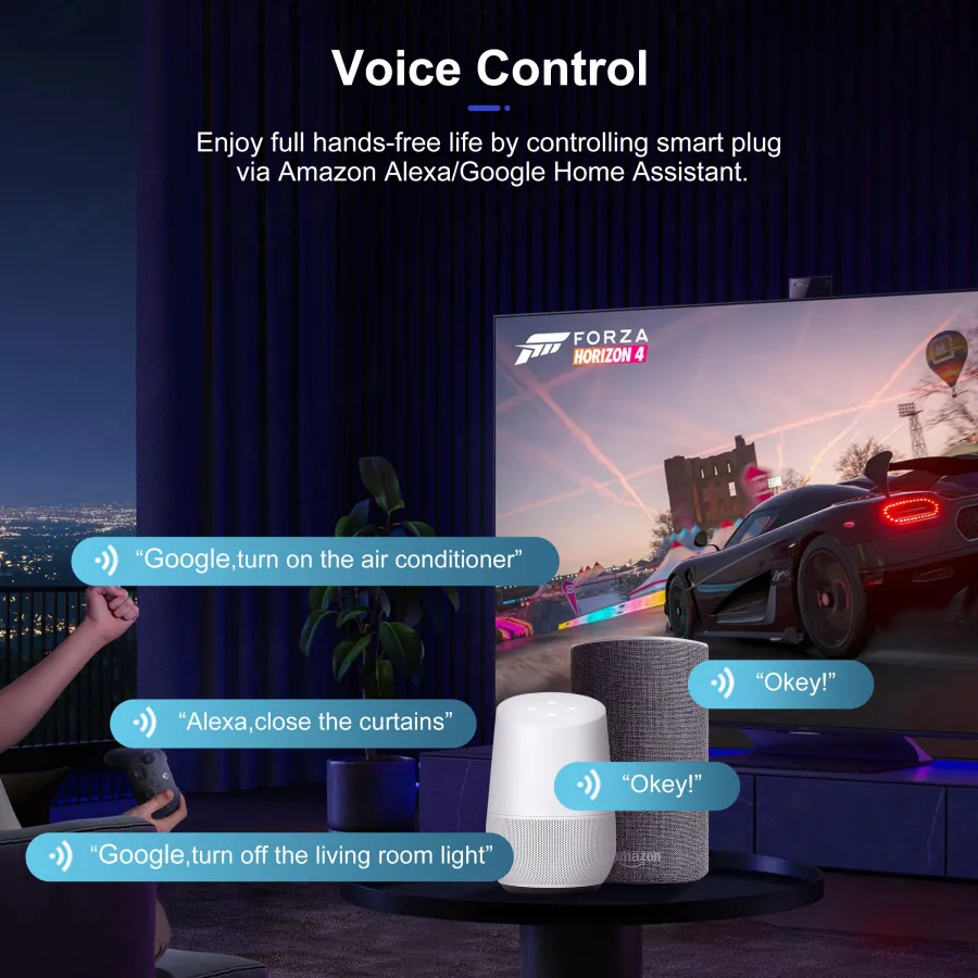 Voice control the smart plug via Alexa/Alice/Google Home Assistant.