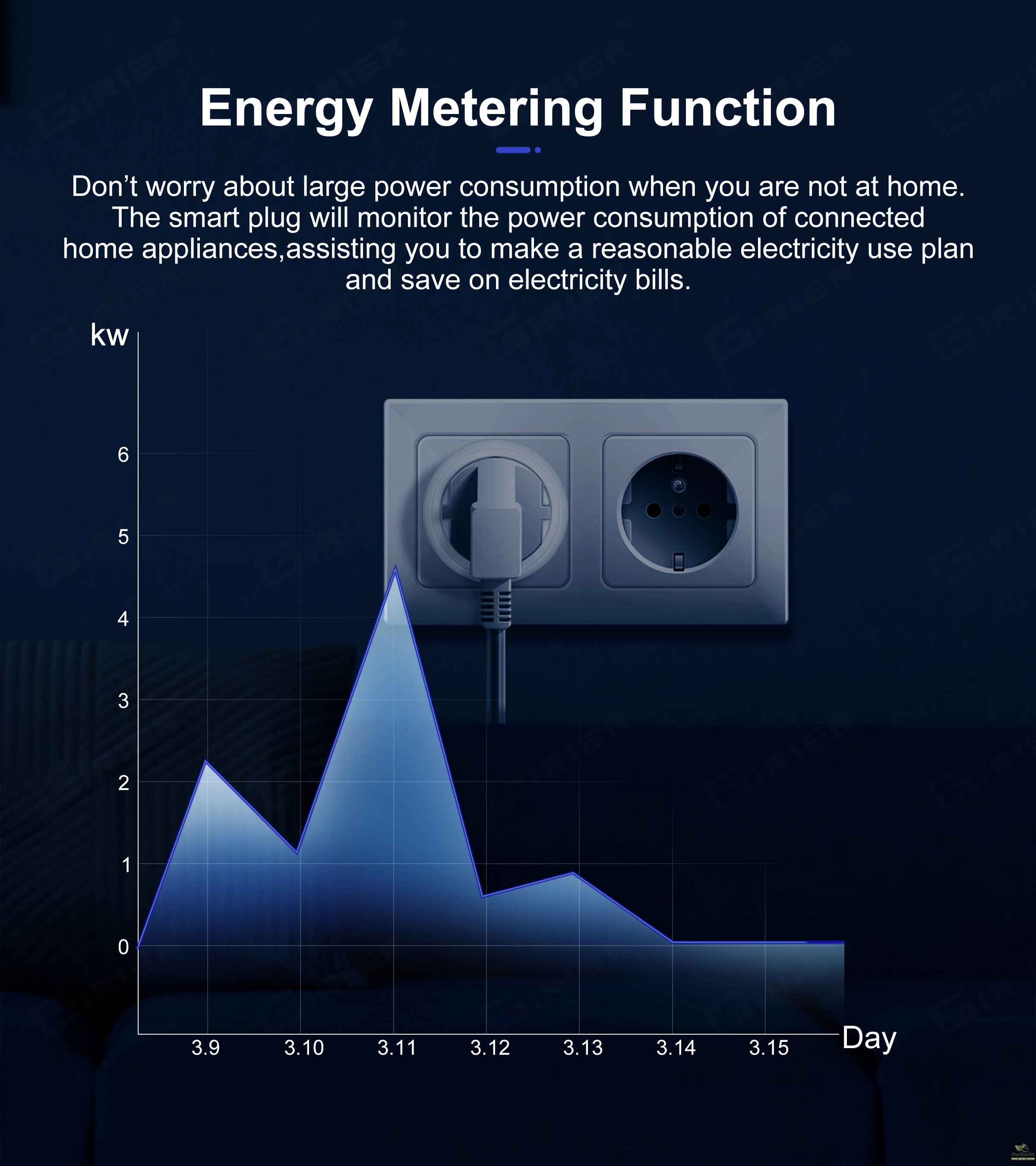 Don't worry about unknown large power consumption of home appliances connected to smart plugs, you can easily view the energy consumption in APP, which assists you to make a reasonable electricity use plan and save on electricity bills.
