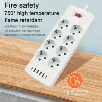 EU Plug AC Outlet Multitap Power Strip 2m Extension Cord Electrical Socket Smart USB Home Office Surge Protector Network Filter