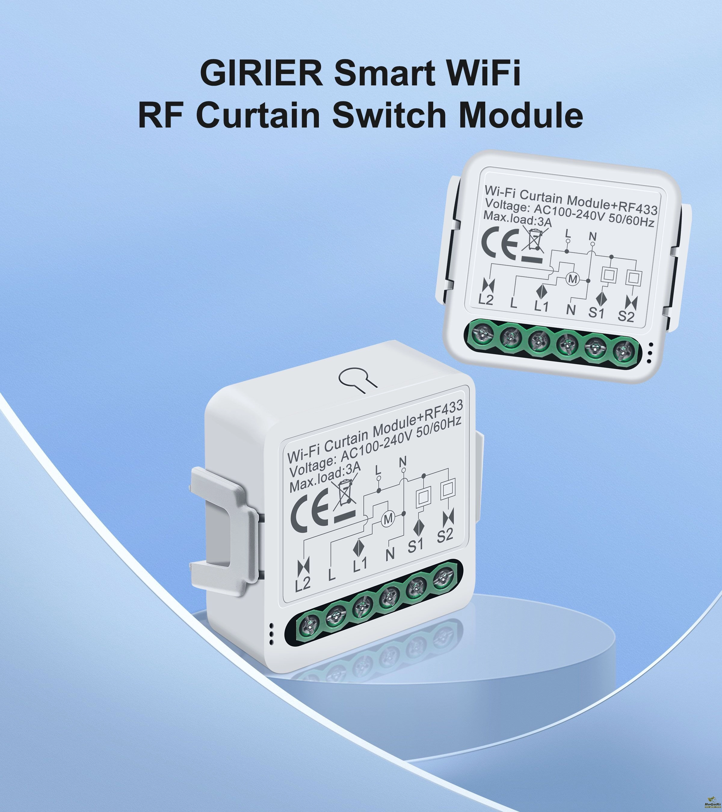 GIRIER Tuya Smart WiFi RF433 Curtain Switch Module for Electric Roller Shutter Blinds Motor 1Gang DIY Smart Home Automation Relay,Works with Alexa Alice Google Home Smart Life APP
