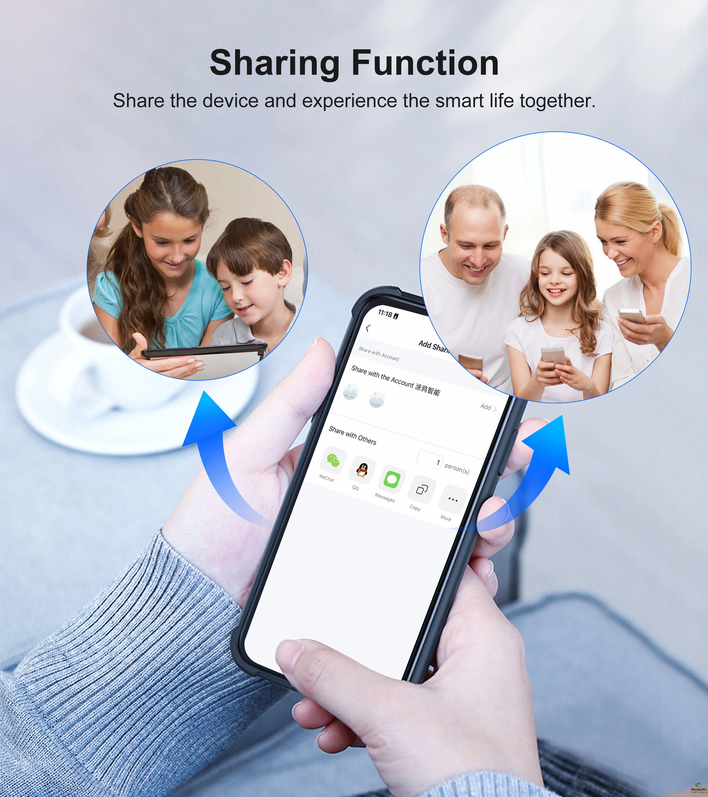 Remotely control the curtain switch module to trigger your original roller blinds via TuyaSmart/Smart Life app.
