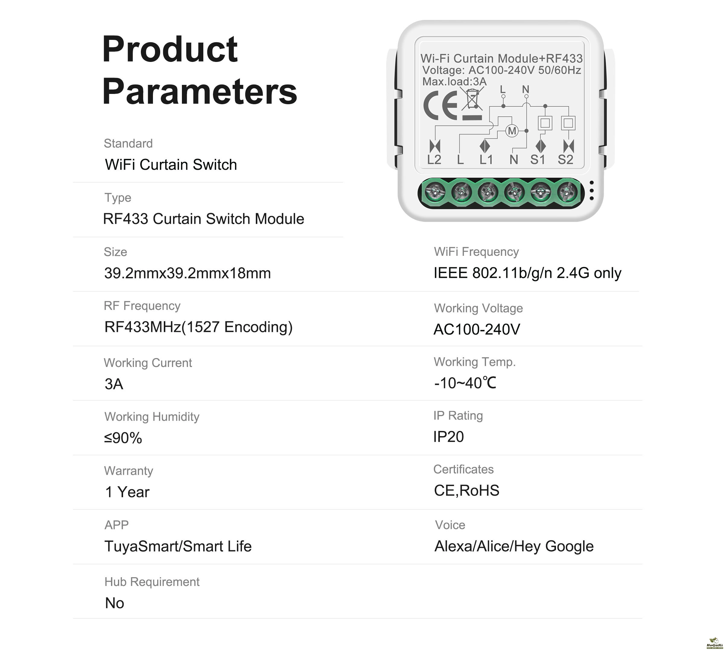 With our latest smart curtain switch module, controlling traditional roller shutters or curtains has never been easier or more convenient. Whether you're at home or on vacation, you can remotely and effortlessly manage your curtains at the touch of a button.
