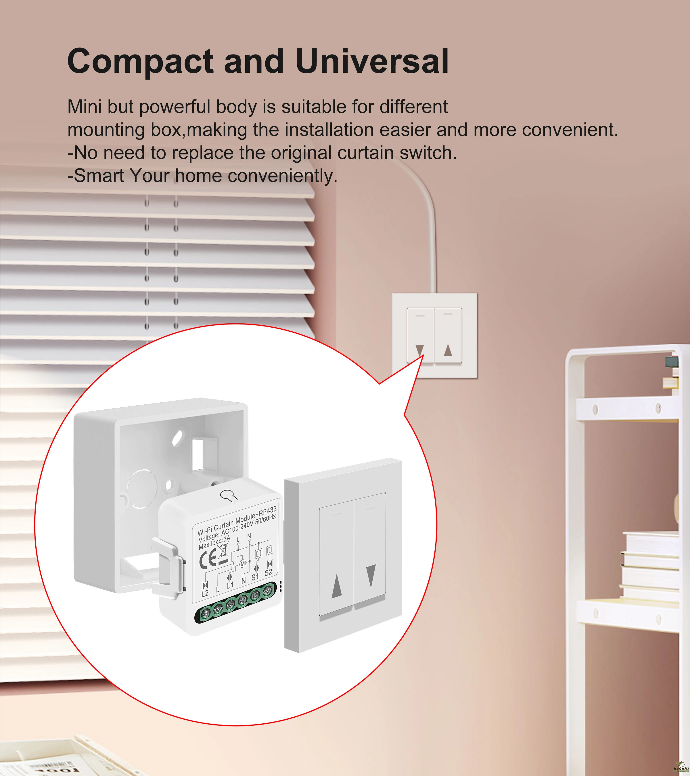 With our smart curtain switch module,you can control your original curtain effortless via Alexa/Alice/Hey Google.Making your curtain smarter without replacing a new smart curtain switch.