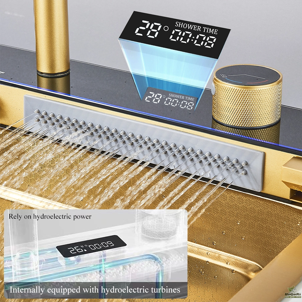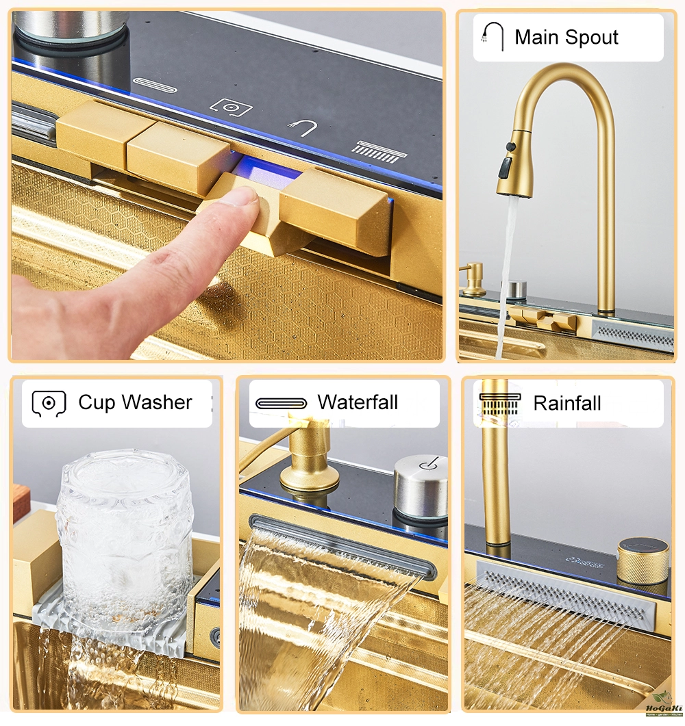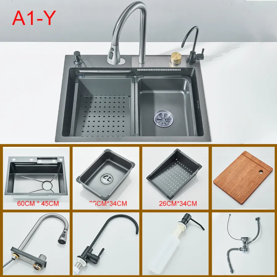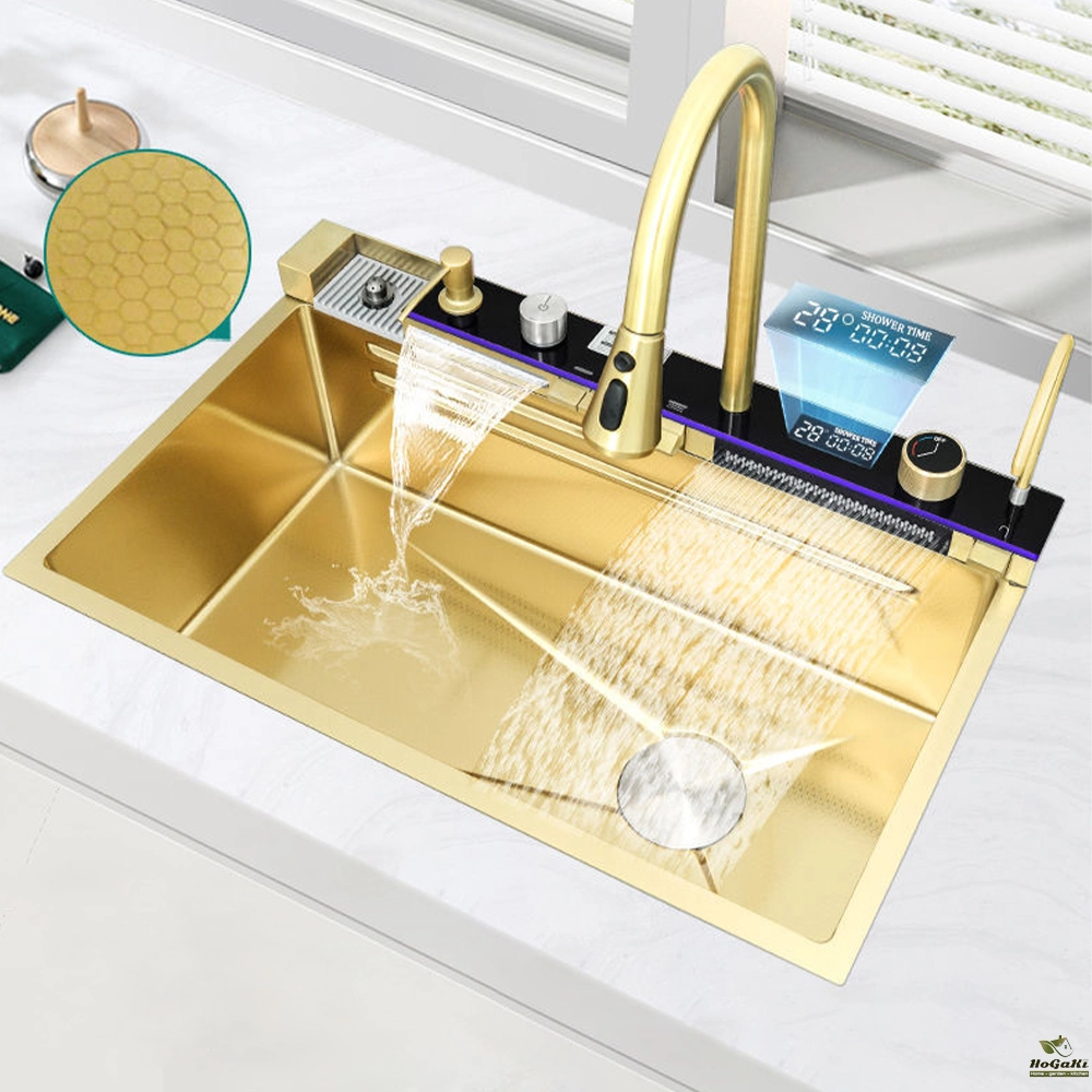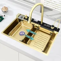 Waterfall Kitchen Sink 304 Stainless Steel Sink Large Single basin With Large Single Slot Sink Above Counter With Cup Disher