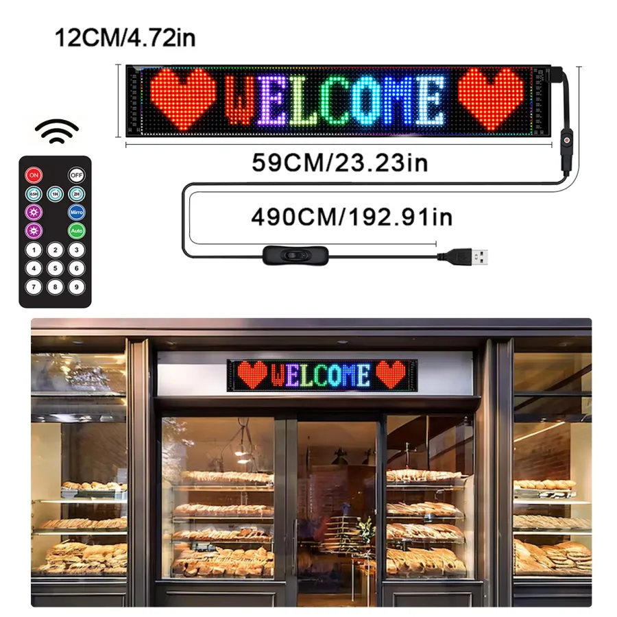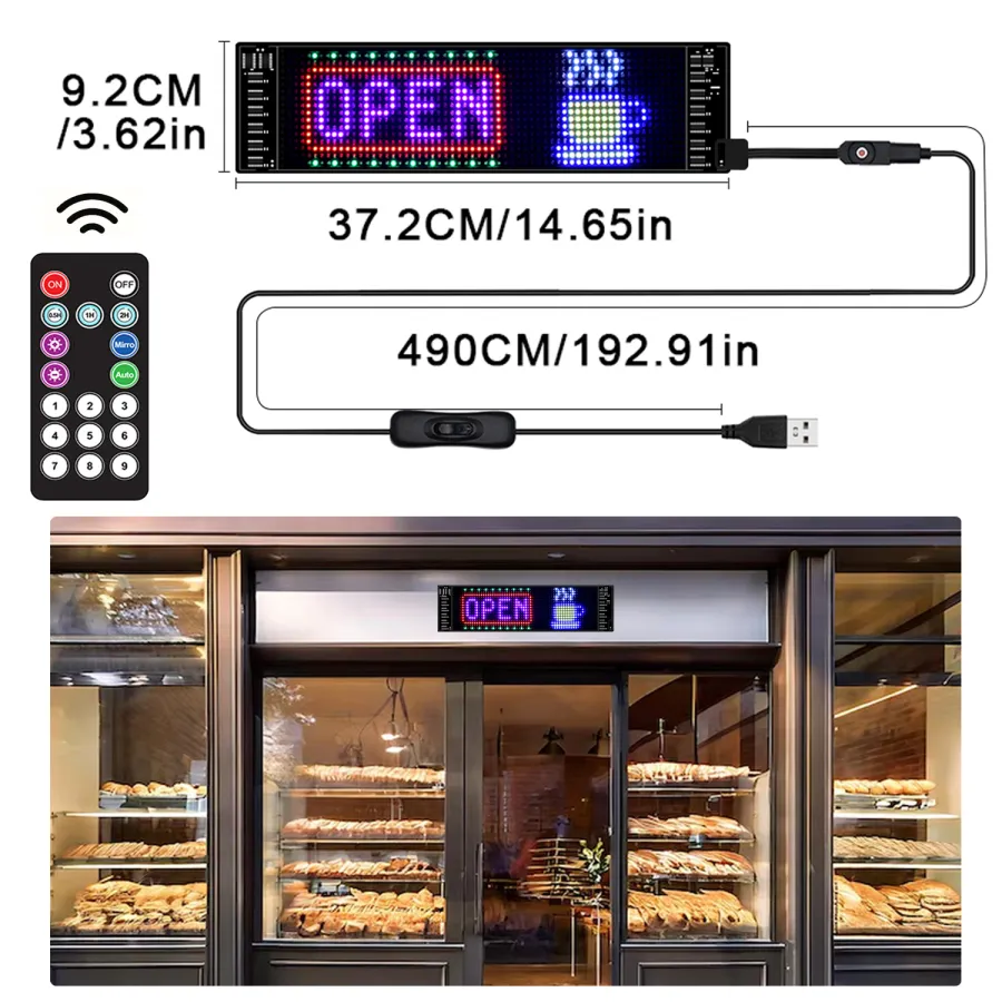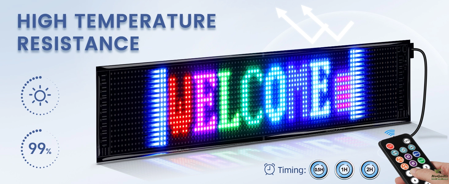 2.This upgraded LED signs adds a timing function to control the display time, and is also equipped with a controller to more easily control the screen brightness, display length, display content, et.