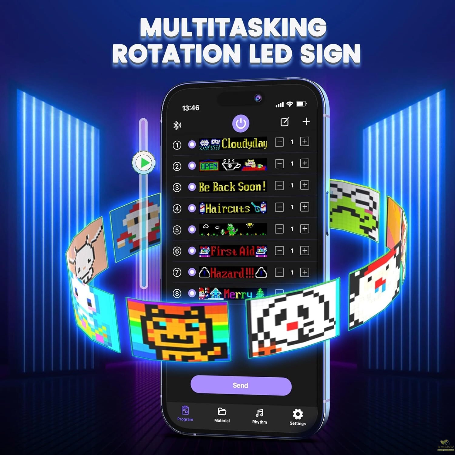 GOTUS LED sign adopts 5V USB upgrade voltage technology. The brightness is stronger, the pattern is clearer and more easily attracts attention. Not only has a variety of scrolling play modes, but also, extremely low heat, low power consumption, touchable and safe to use.