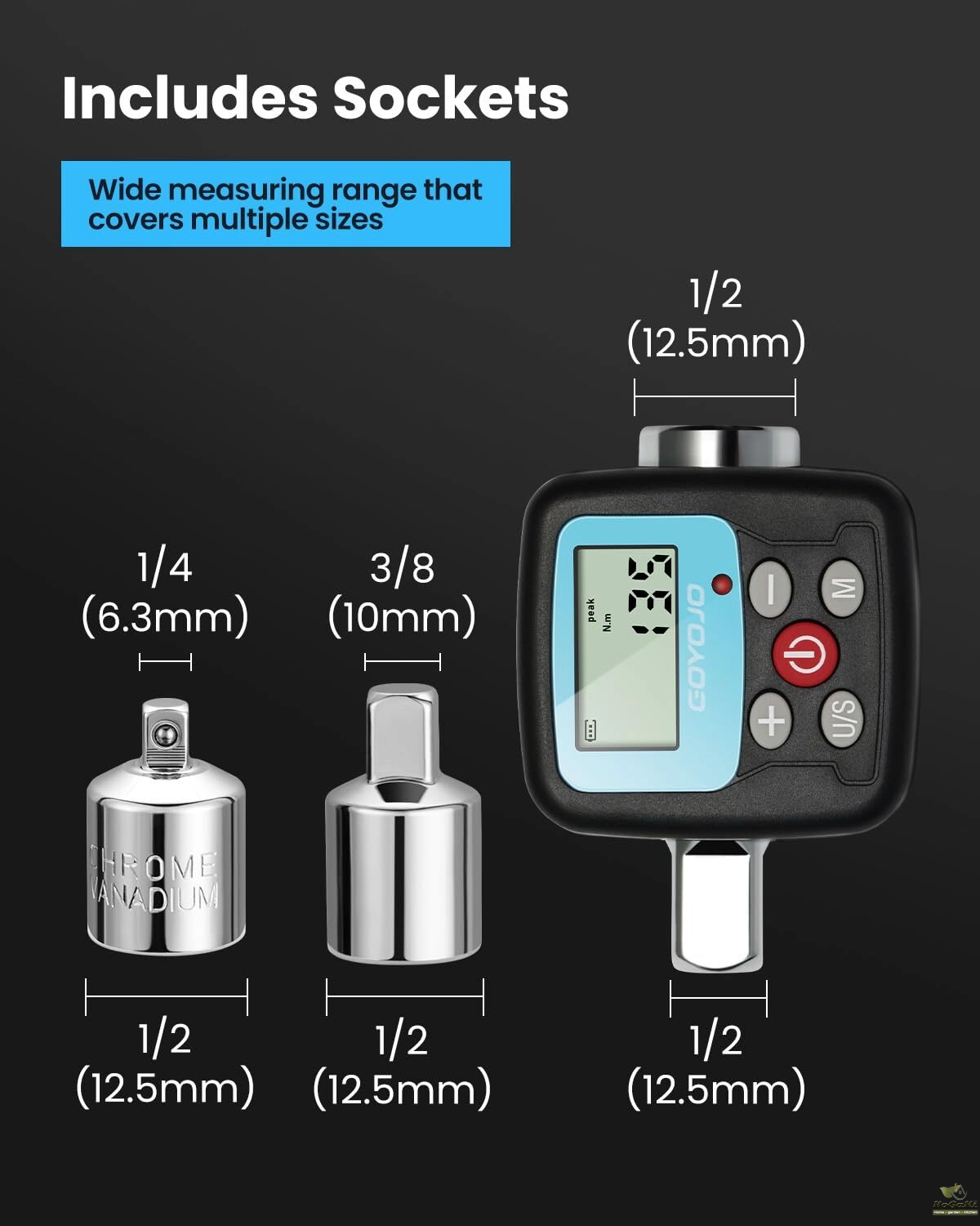 GOYOJO Digital Torque Wrench Adapter - Precision Electronic Torque Tool Converter and Meter with LCD Display, Includes 1/2", 1/4