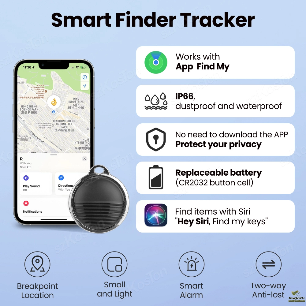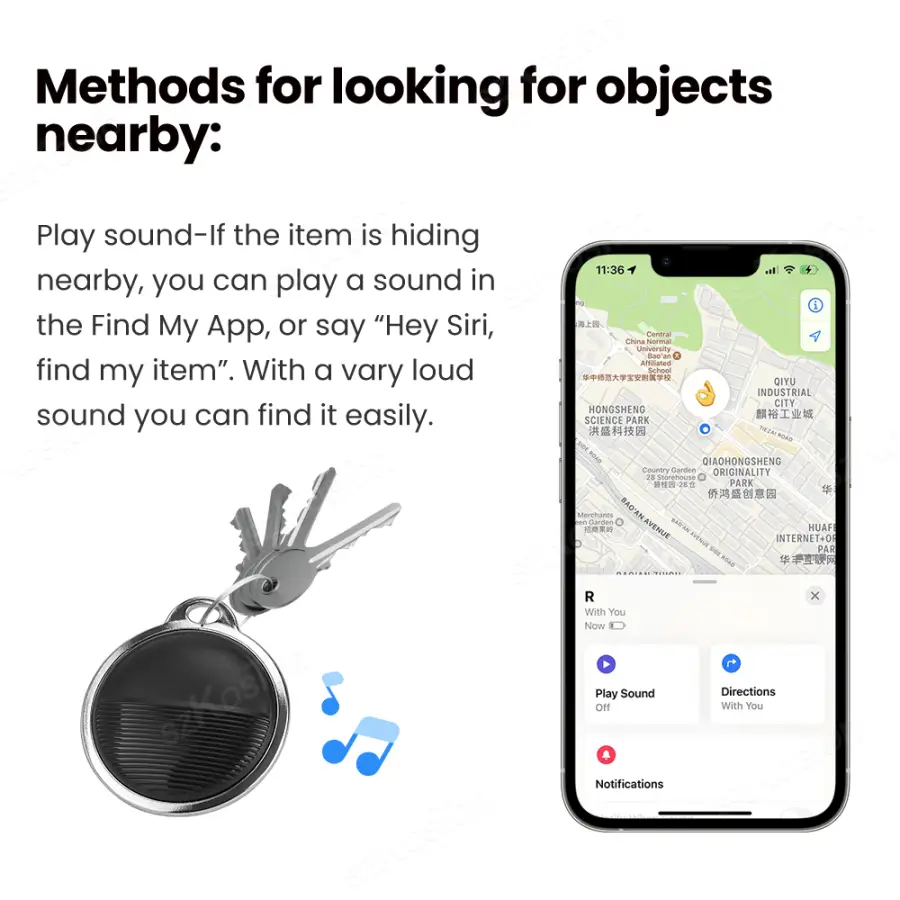 【Find Nearby】: Up to 200ft/60m Bluetooth range, ultra-long distance tracking. You can use the Find My app to find your lost items when SZKOSTON Key Finder is in range, or just ask Siri for help. Built-in speaker(loud sound, 80-100 dB) plays beep sound to help you find your things. When your item lost, SZKOSTON key finder can leads you right to yours nearby or tell you the newest location.
