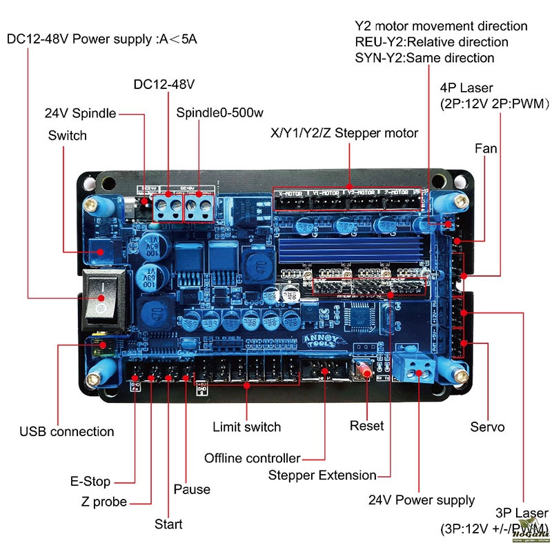 GRBL Controller Control Board 3Axis Stepper Motor Support Offline Double Y Axis USB Driver Board For CNC Laser EngraverPower Supply:DC12-48V