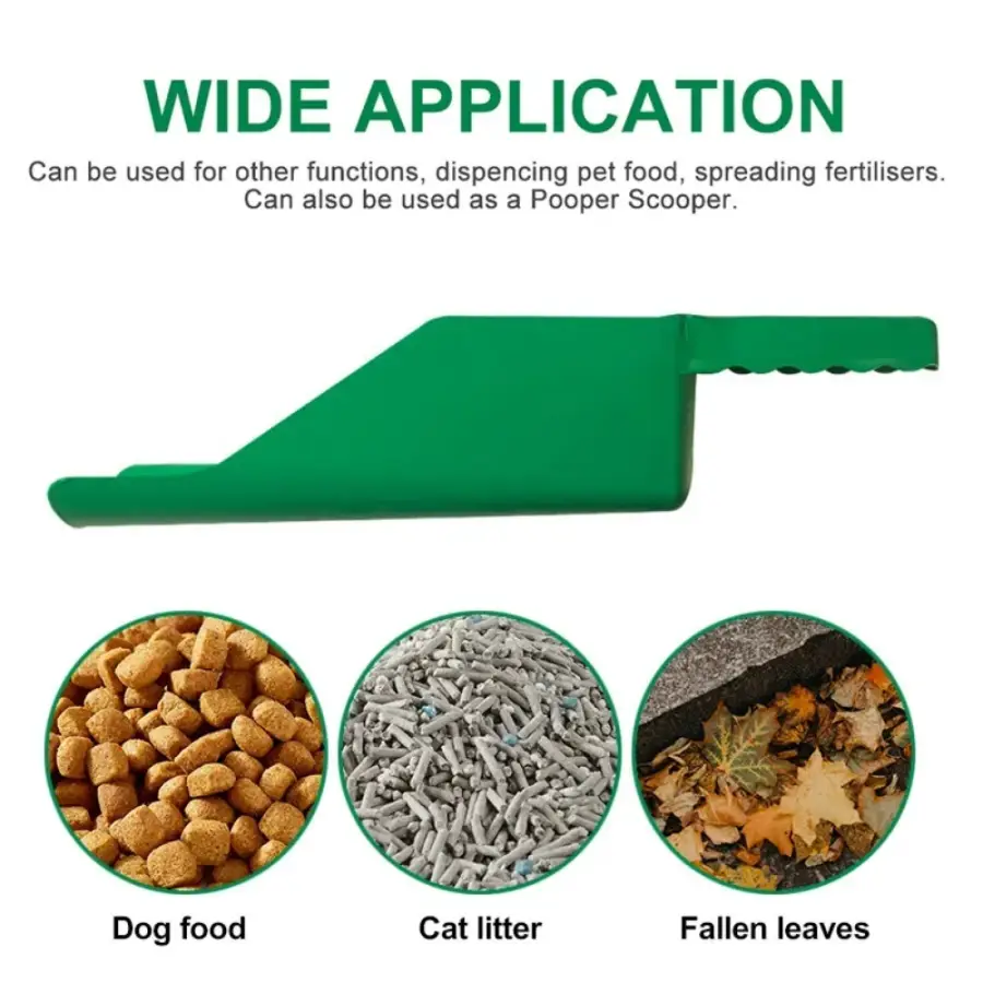 2.WIDE APPLICATION: Can be used for other functions, dispencing pet food, spreading fertilisers. Can also be used as a Pooper Scooper.