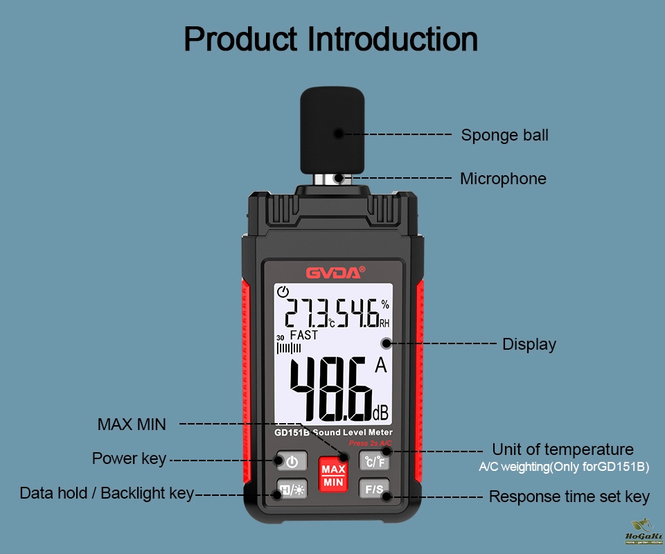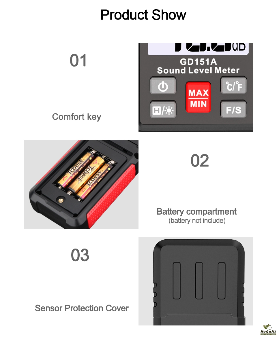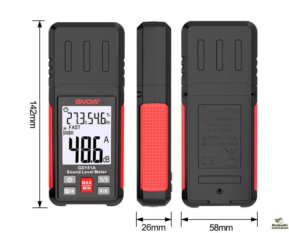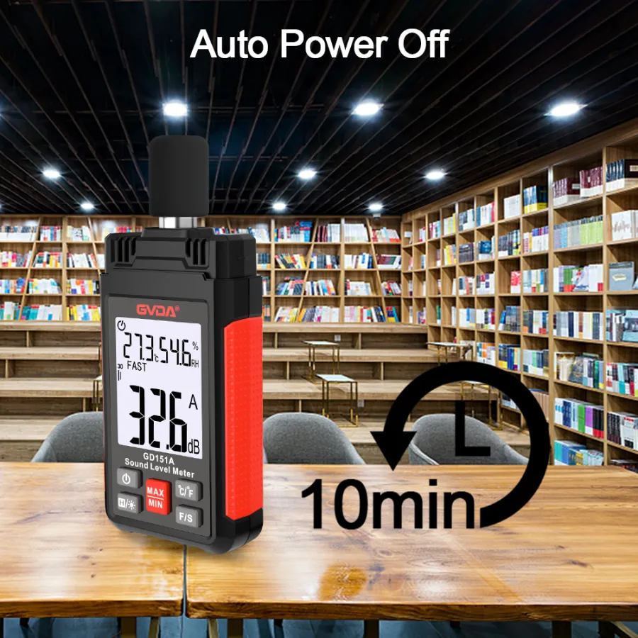 This sound level meter is used to measure the sound level of the environment, such as factory, workshop, school, residence, office area, traffic road, audio and so on. It is also suitable for noise engineering, product quality control, health prevention and control, etc. It can measure ambient temperature and humidity too.