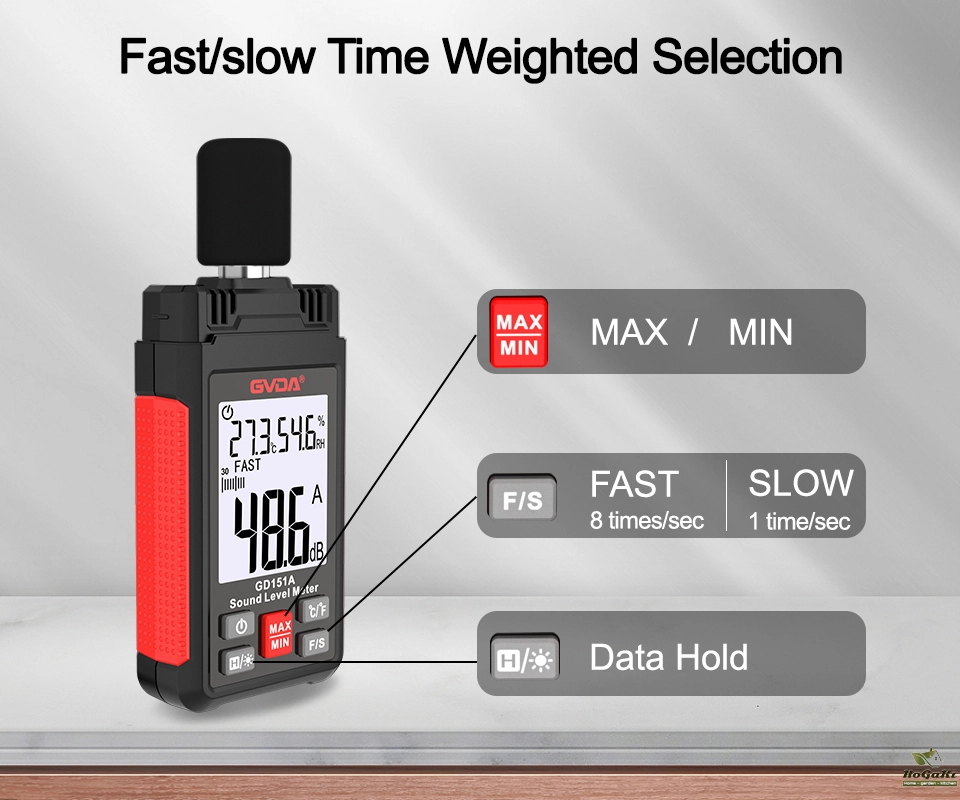 it is used to measure the sound level of the environment, with fast/slow time weighted switchable for various sound measurement requirement.