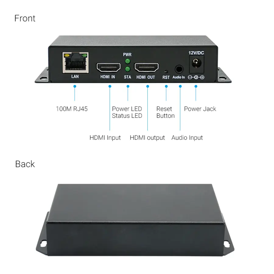 * Ultra mini size(125x72x25mm) and ultra lightweight(200g), the live streaming encoder is perfect for the live streaming applications with frequent move or tiny device installation space.