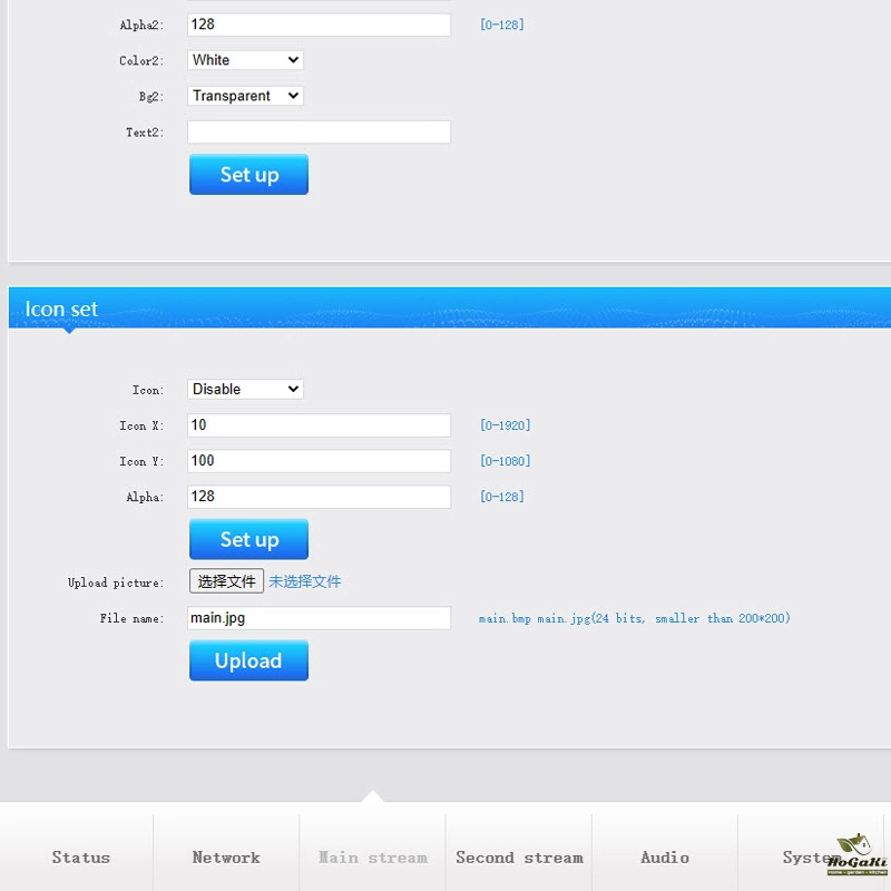 6. Support Text and BMP photo insert as Stream Logo for main stream & 2nd stream.