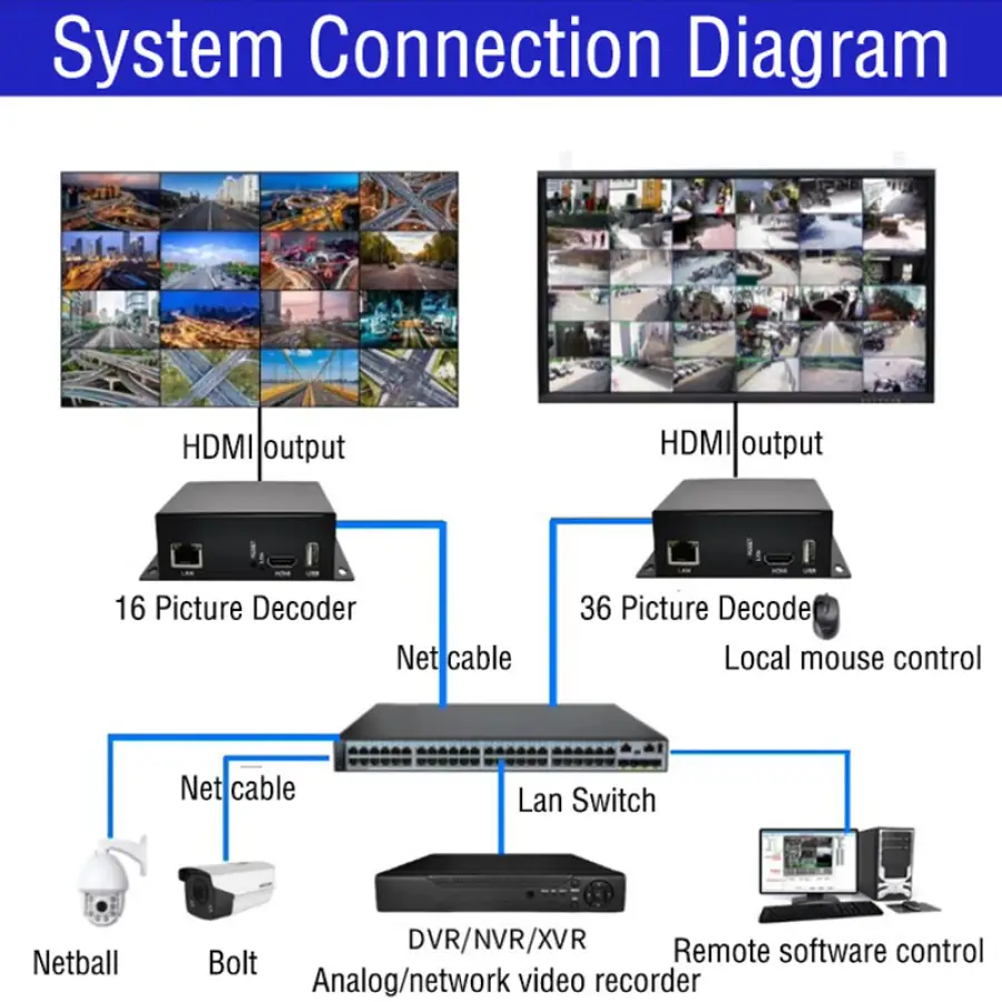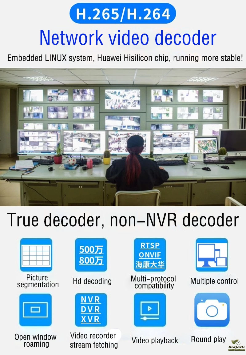 H.265/H.264 Network Video Decoder HDMI HD 1080P ONVIF Decoder with USB Decoding RTSP 4K NVR/DVR/XVR Monitoring split screen