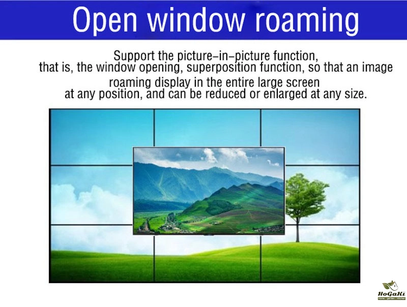 ◆ The signal can be displayed in any position of the screen window, overlay, stretch, roam, cross-screen, zoom or picture in picture on each screen