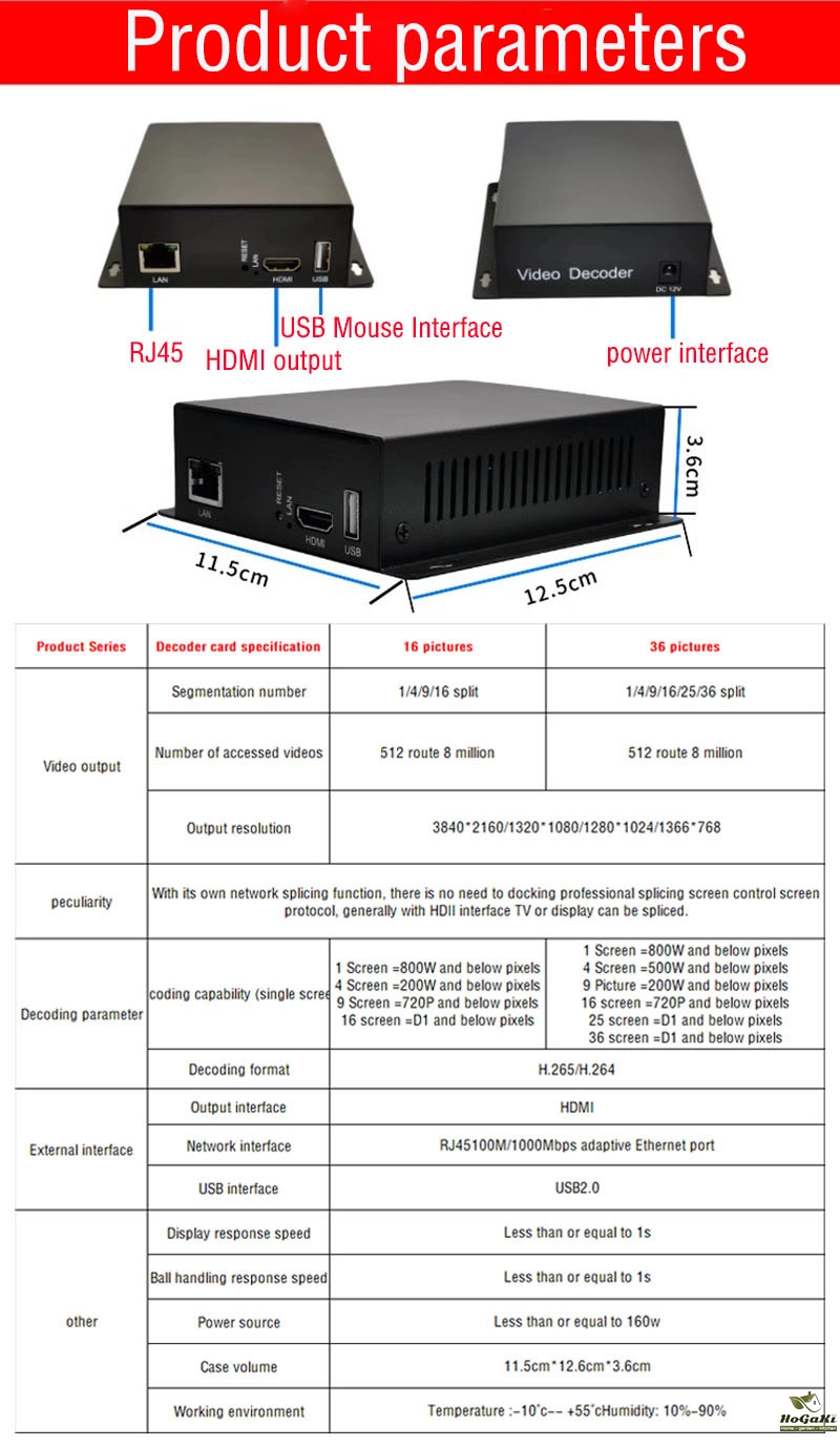 Single screen (card) decoding capability: 1 channel 800W, 4 channels 400W, 9 channels 200W, 16 channels D1