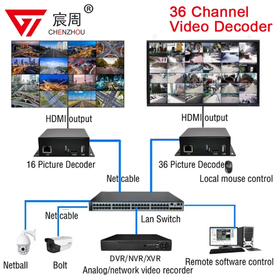 H.265/H.264 Network Video Decoder HDMI HD 1080P ONVIF Decoder with USB Decoding RTSP 4K NVR/DVR/XVR Monitoring split screen