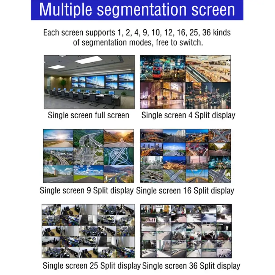 There are two options, one is "16 Screen segmentation" and the other is "36 Screen segmentation". The price is difference, please choose as needed!