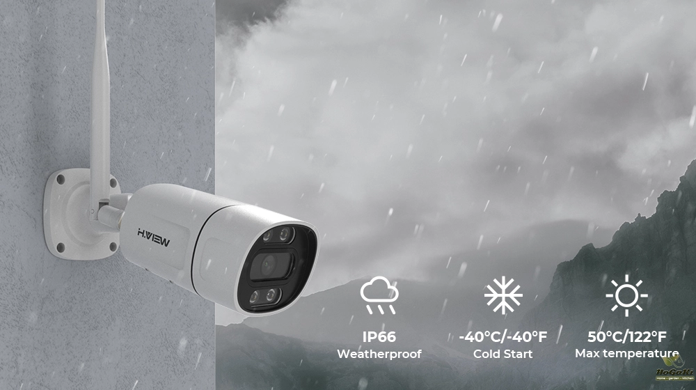 Outdoor and indoor ip camera with an IP66 waterproof rating. So you can feel free to install it outdoor, like in your garage, backyard, or anywhere else. It can stand harsh weather conditions, including rain, snow, intense cold and heat.