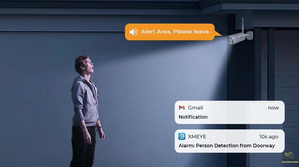 Once an intruder is detected, the camera's spotlight and voice warning are triggered to alert potential criminals. And push alerts to your mobile device and email.